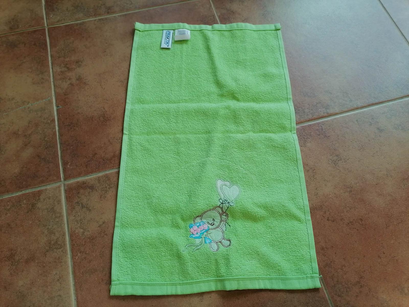 Predám krásny, nový a nevypratý uteráčik zn. Praktik, svetlozenená farba. Vhodný aj na doma aj do škôlky. Cena bez poštovného