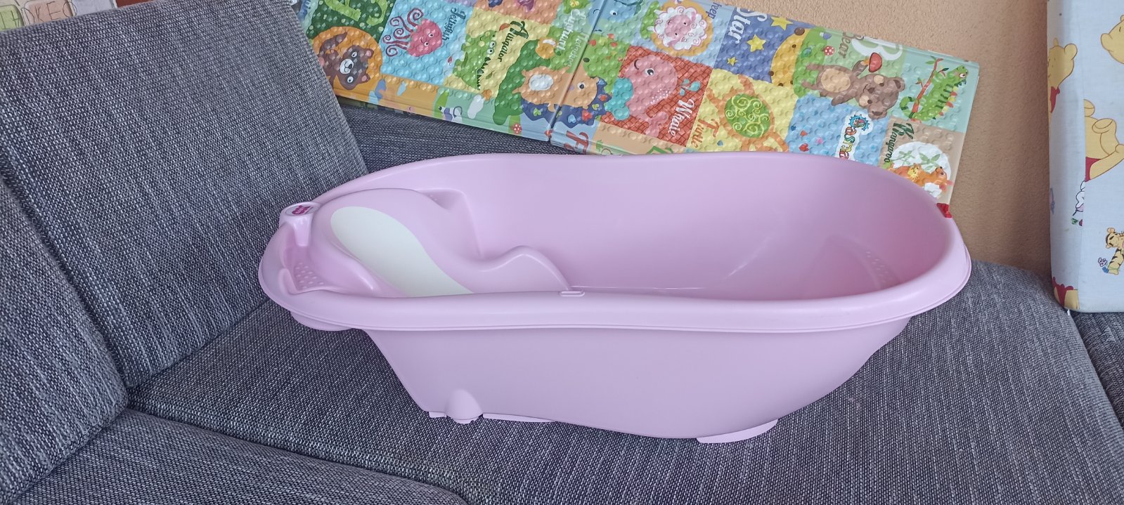 Vanička s dvoma polohami kúpania bábätka, do 6 mesiacov bábätko leží na lehátku, od šiestich mesiacov sedí z opačnej strany. Lehátko aj priestor na sedenie je protišmykové . Je v top stave, mali sme aj inú vaničku. Vyrobená v Taliansku, pôvodná cena 30 Eur.