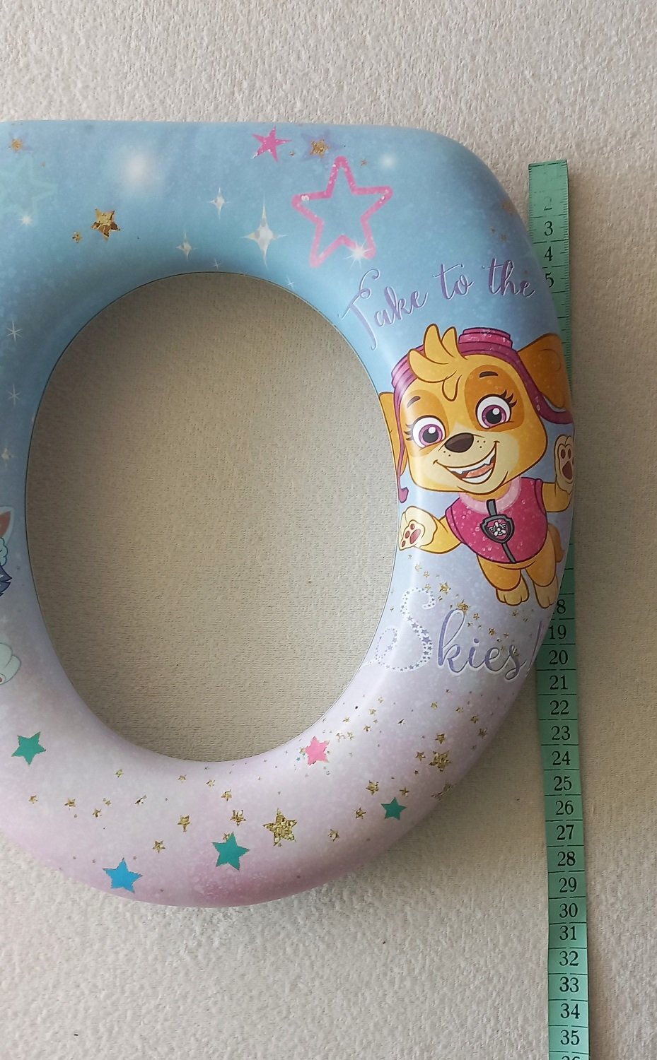 Detský podsedák, alebo redukcia na WC Paw Patrol. Manžel zospodu nalepil pár protišmykových nálepiek, aby sa dcérke nešmýkala, používaná na cestovanie (keďže nie všetky WC sú prispôsobené pre deti). Používaná chvíľu, nepoškodená, vyčistená. Rozmer je na fotke. Máme viacero detských vecí, môžete si zostaviť vlastný balíček. Pri kúpe viac vecí zľava.