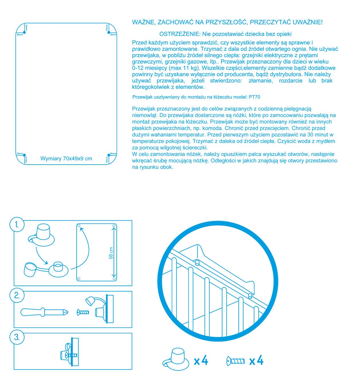 Tento výrobok je určený na umiestnenie pre 60 cm široké postieľky