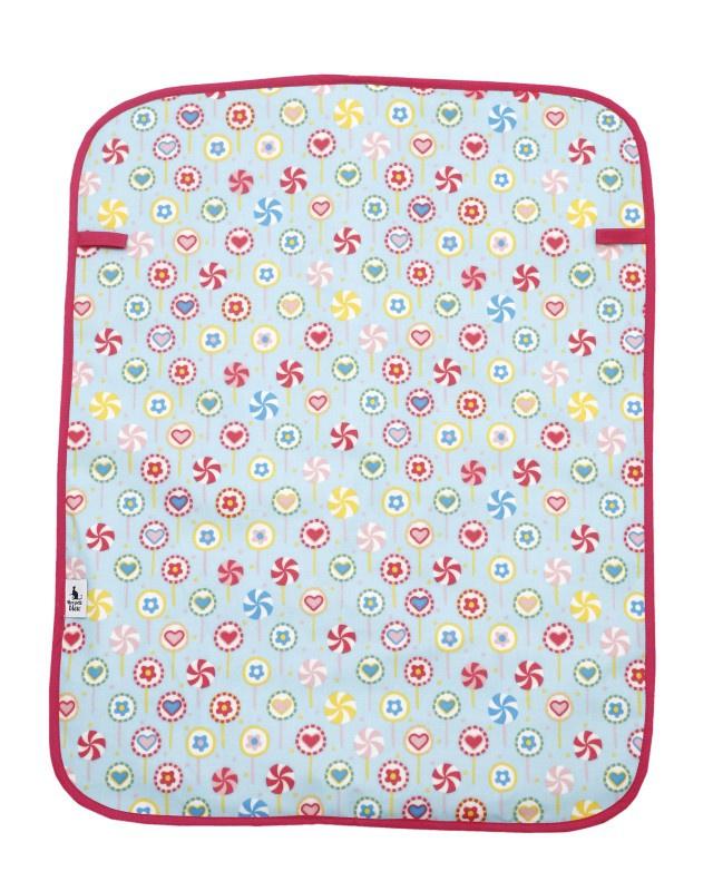 Príručná prebaľovacia podložka Mon Petit Bleu je ďalší jedinečný produkt z dielne Motherhood. Má mnohostranné využitie. Jedna strana je velúrová s aplikáciou vtláčaných mačiek. Druhá strana je potiahnutá bavlnou a tenkou vrstvou laminátu, ktorá zabezpečí dokonalú nepremokavosť. Výplň tvorí mäkká vrstva testovanej polyesterovej vlákniny.
