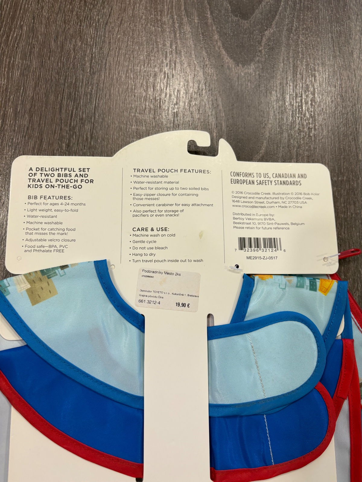 7p5k.Praktické a hravo ilustrované podbradníky v dvoch vizuálnych prevedeniach so zapínaním v zadnej časti na krku dieťatka formou suchého zipsu. Súčasťou balenia je aj praktické cestovné vrecko na zips s plastovým háčikom na zavesenie.