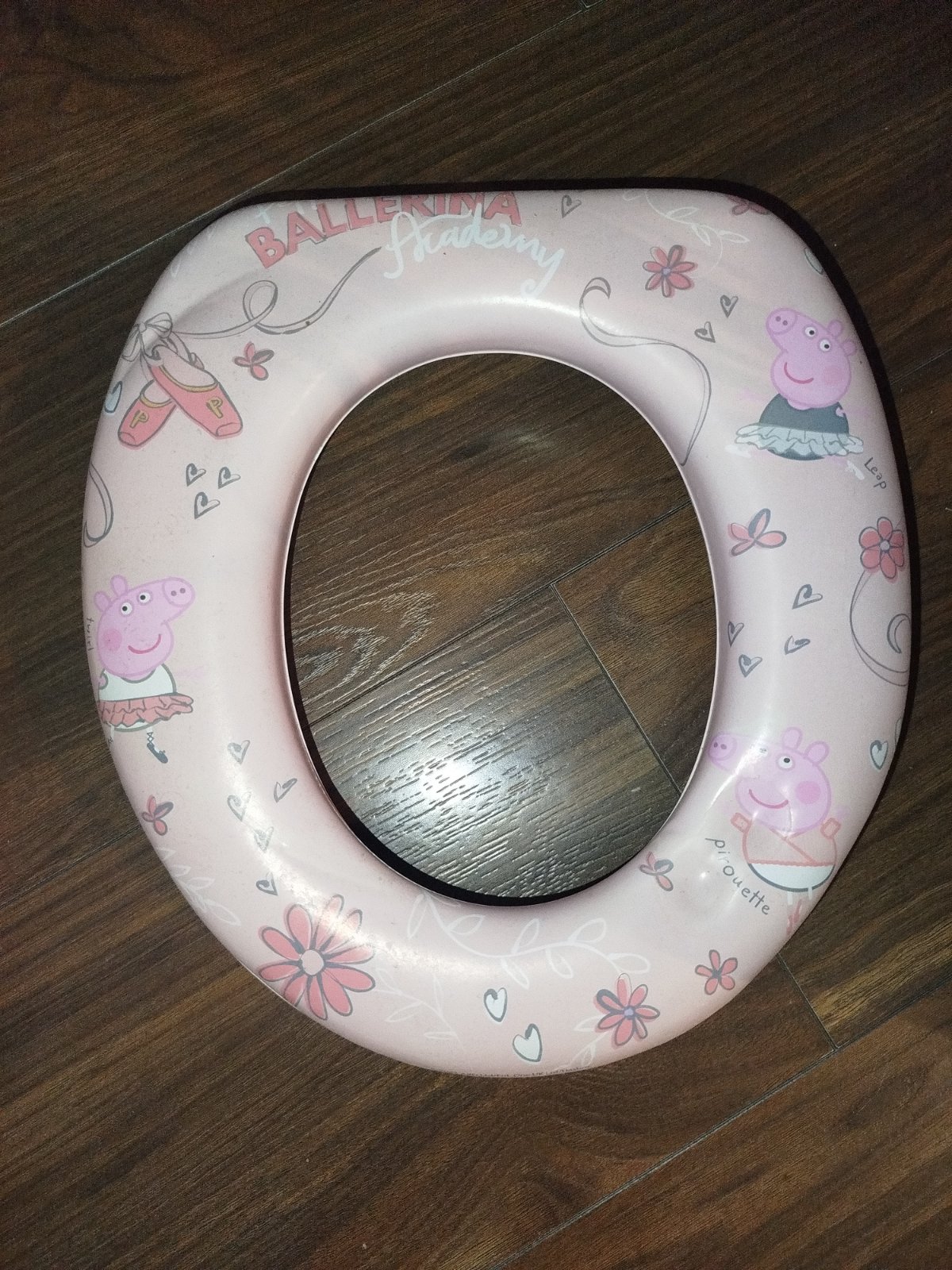 Predám nepoužívanú redukciu na wc s obrázkom prasiatka Peppy, je tam trošku preliačina,mala som ju pritisnutú,na používaní to neprekáža.