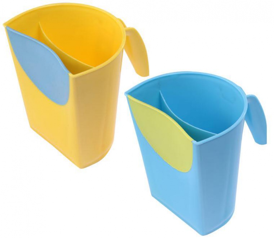 Gumová elastická časť vedierka zabraňuje stekaniu vody do očí a dve komory vedierka zabezpečia dôkladné opláchnutie všetkých častí hlavy.