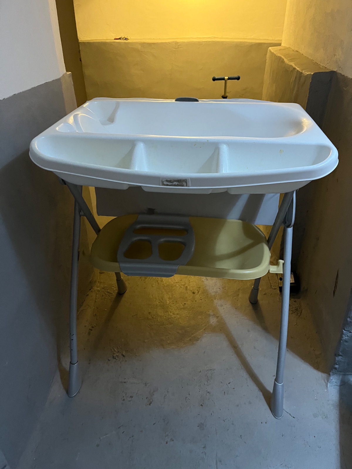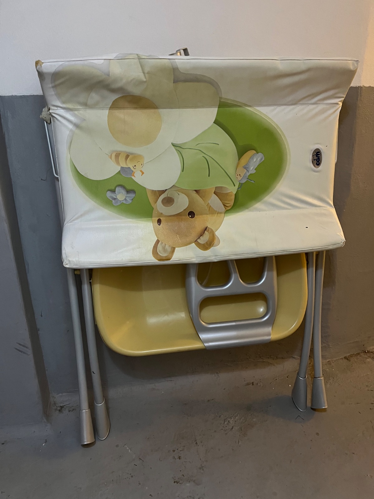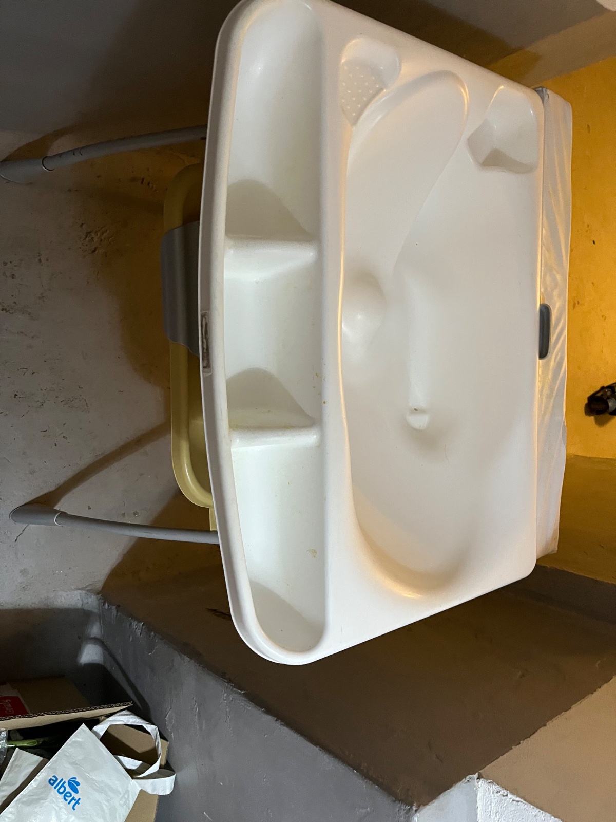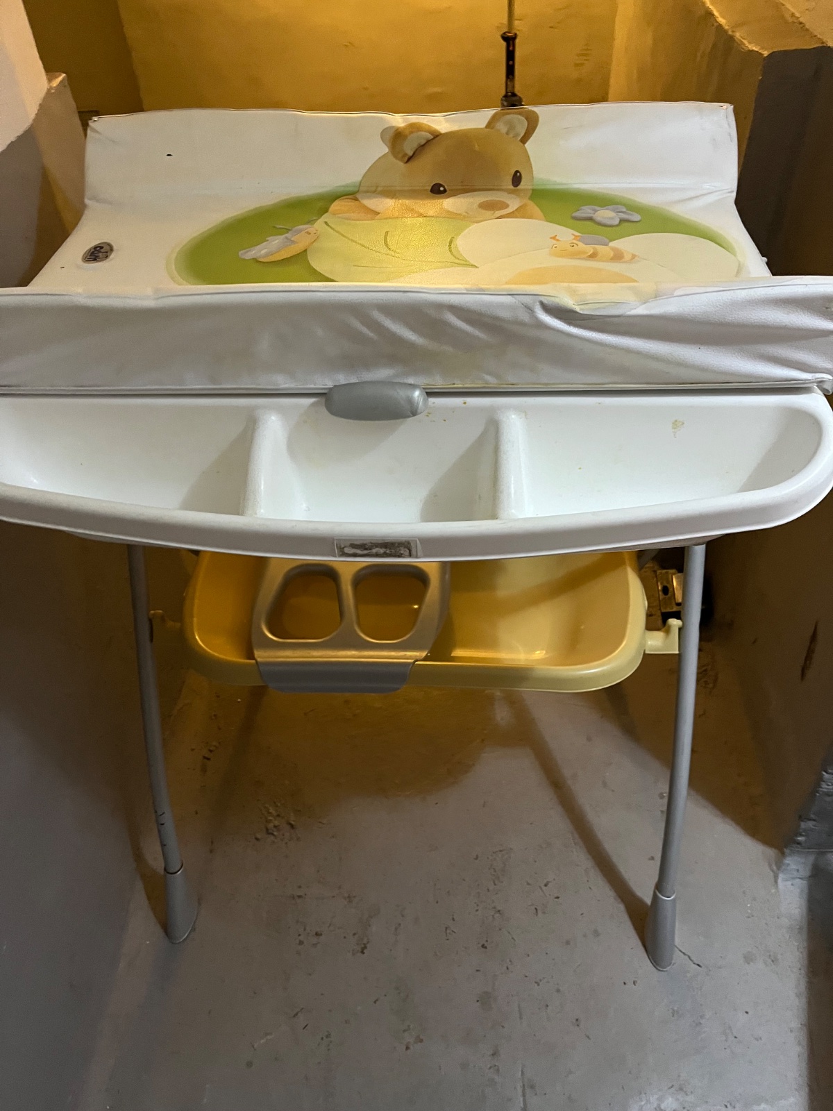 Zachovala vanička s pultíkom na prebaľovanie a úložným priestorom. Prebaľovací pultik ma na jednej strane natrhnutý poťah, čo nebráni funkčnosti-viď foto.