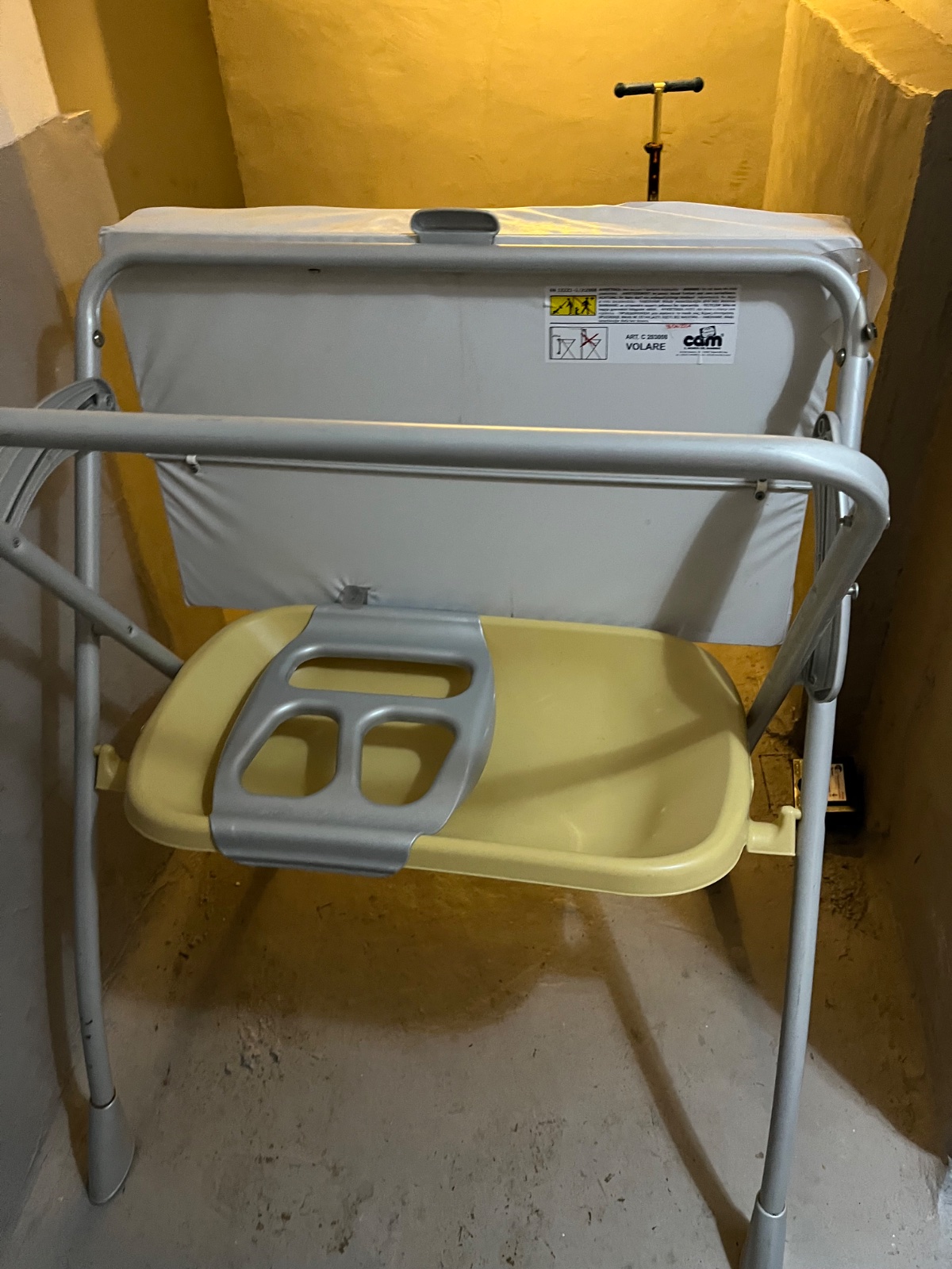 Predám prebalovací pult s vaničkou značky CAM vo veľmi dobrom stave. Používaný, ale plne funkčný. Má pár škrabancov a na jednom rohu je prasknutá podložka (viď foto- je to prelepené páskou), ale to...