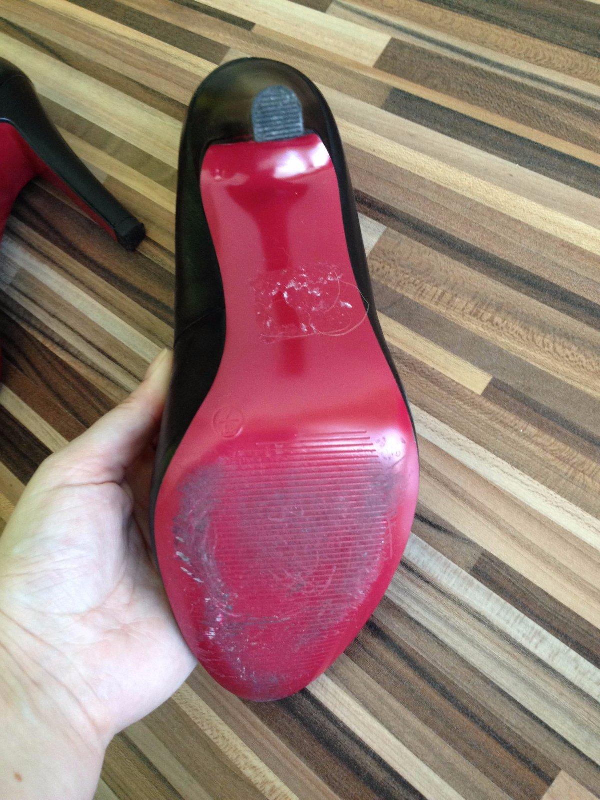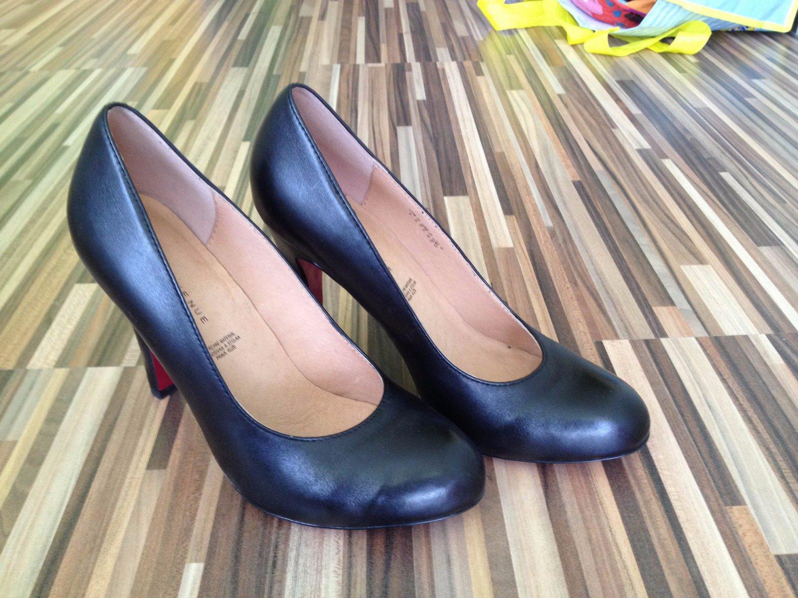 Len párkrát obuté elegantné čierne lodičky z pravej kože - kúpila som si tie opäť po roku nosenia (prekvapivo ich stále mali v ponuke), lebo tie pôvodné sa mi už okopali, ale z nejakého dôvodu sa mi vyzúvajú