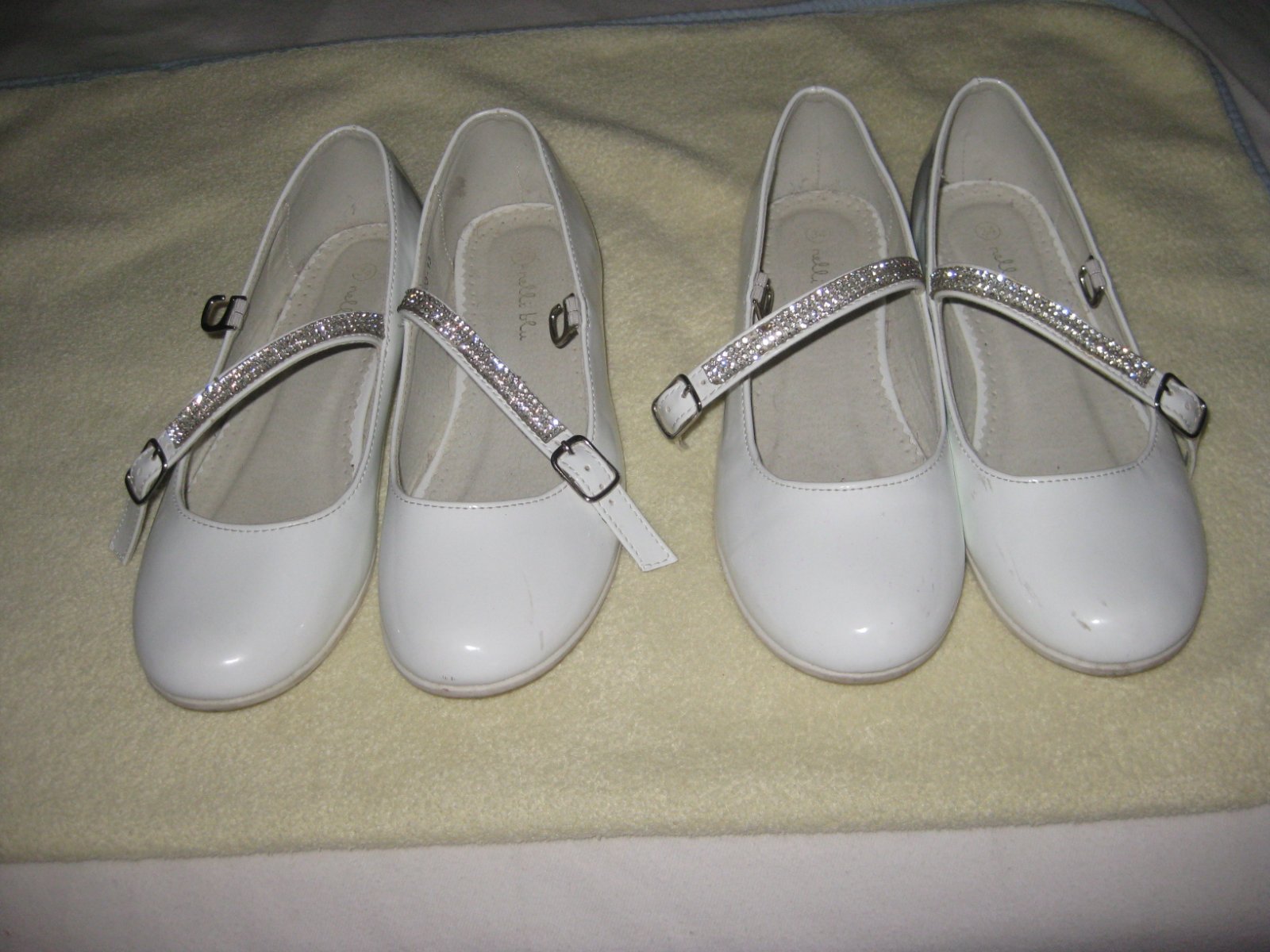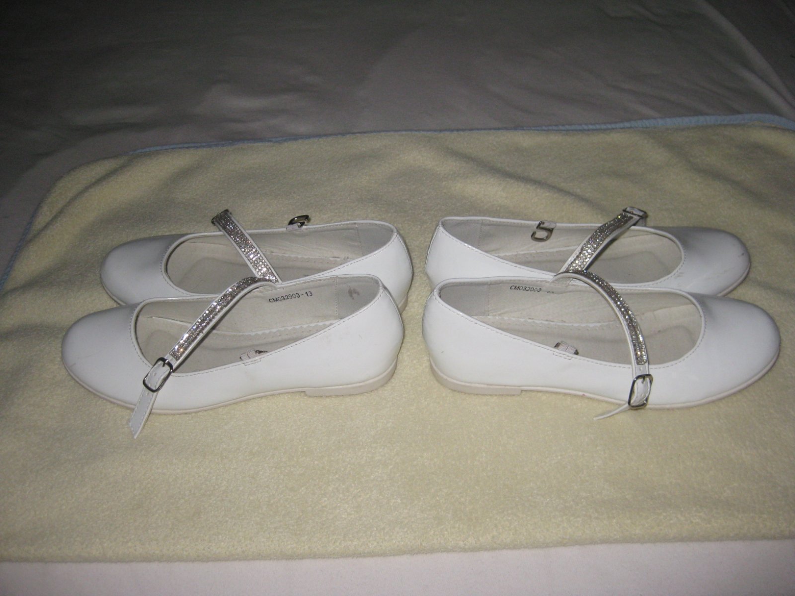 Dvoje biele balerínky vhodné na 1. sväté prijímanie, svadbu či inú príležitosť.