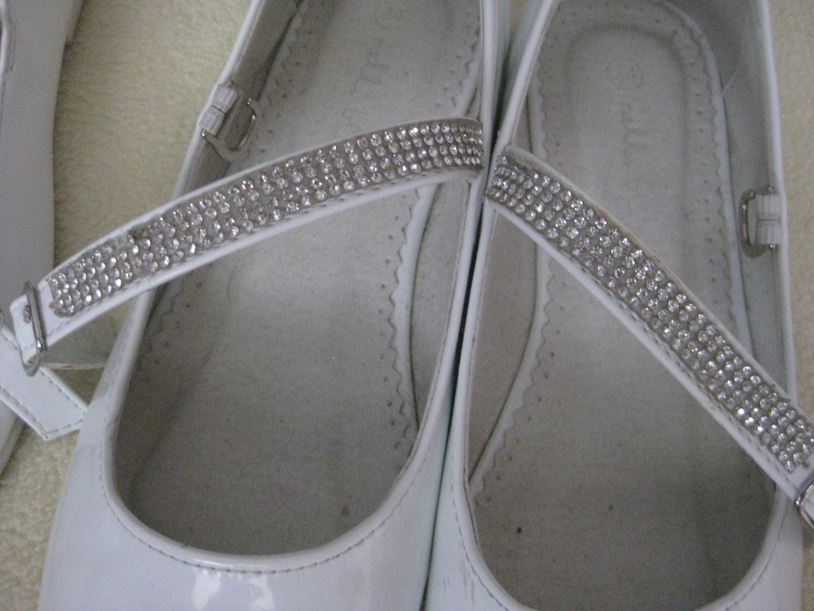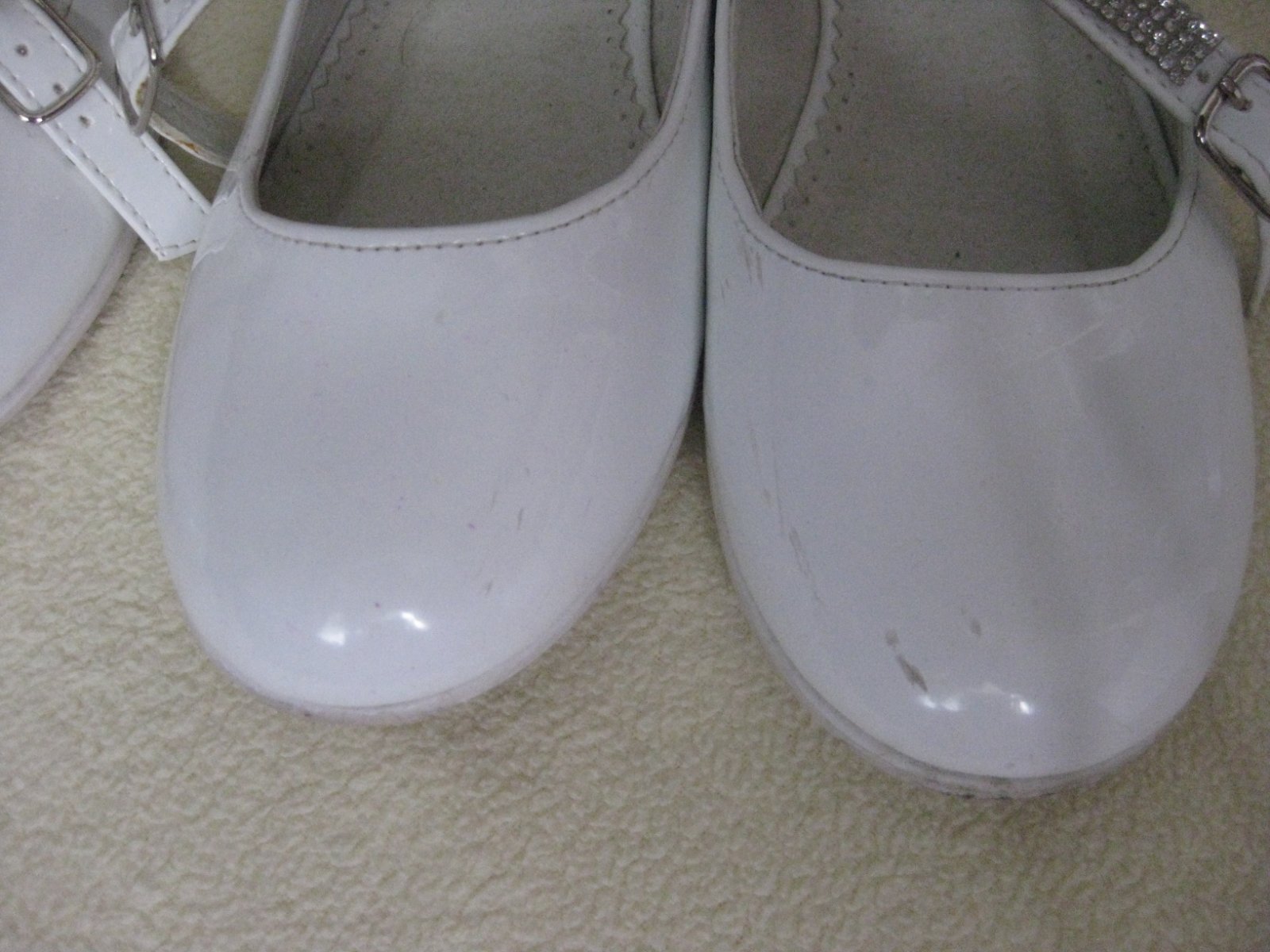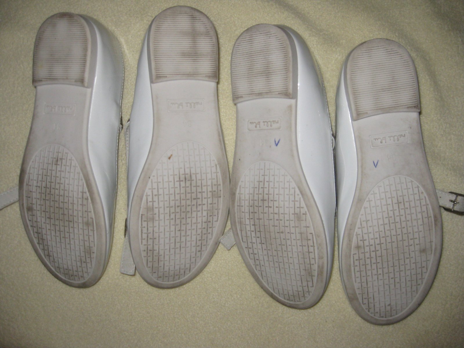 Baleríny boli obuté dva tri krát, ale aj napriek tomu majú oškreninky, ktoré sú nafotené. Okolo jednej pracky je akoby vytečené lepidlo (možno z tepla, lebo to tam určite nebolo).