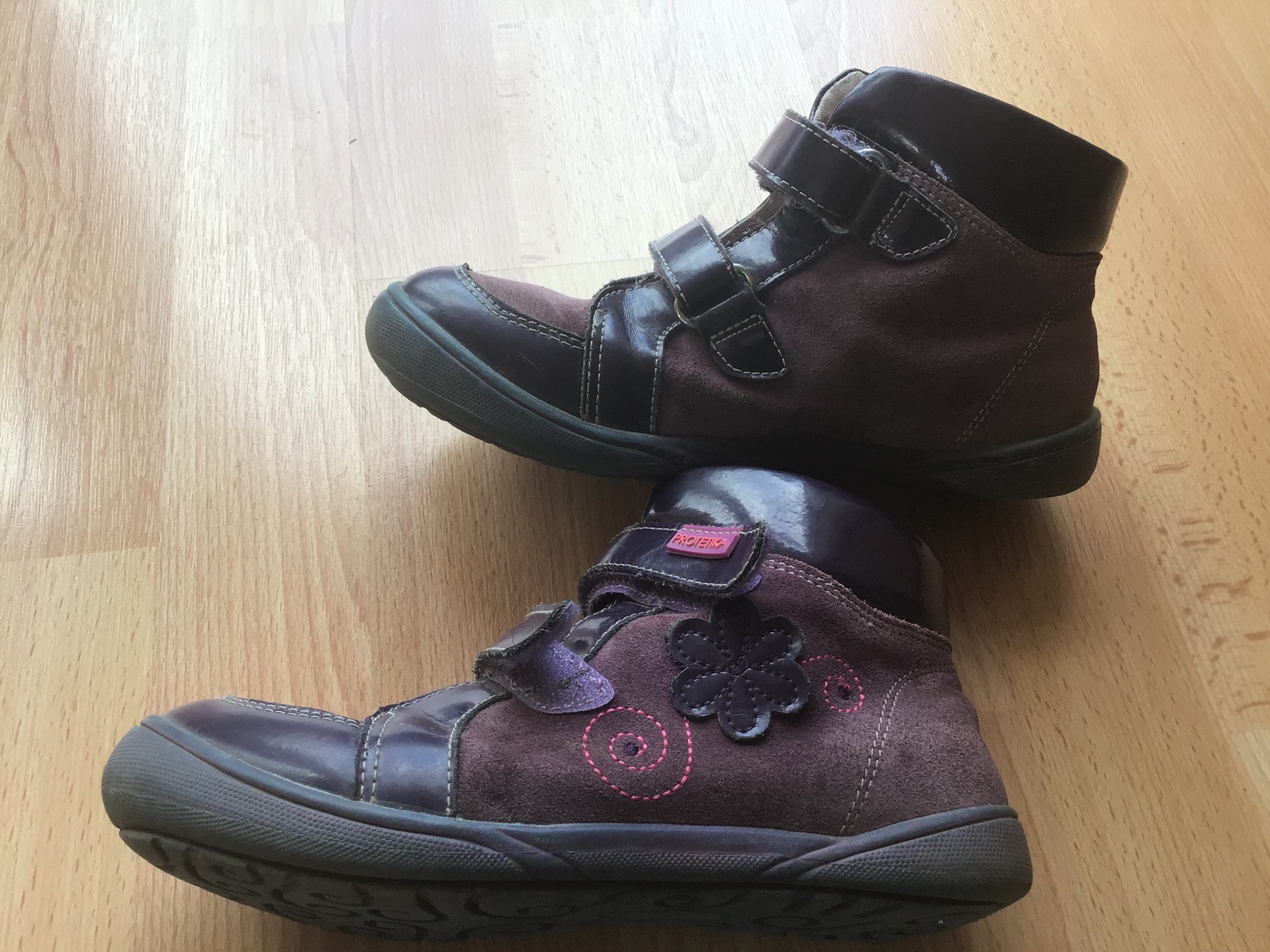 Predám dievčenské kožené topánky Protetika Kiki s vyberatelnou kozenou stielkou,veľkosť 32, po 1 dieťati.Vnutorna dĺžka stielky 20,5 cm. Vady: vyblednuta farba brúsenej koze z čistenia a horné suché zipsy sú opotrebovanejšie. Cena bez dopravy. Možný osobný odber Bobrovec, Lipt.Ondrej resp. Lipt. Mikulas.