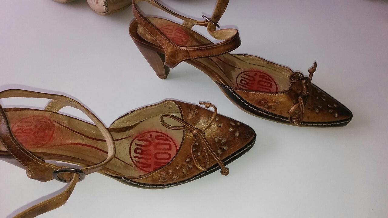 Kozenne lodicky nabezne nosenie ja som ich mala obute 3x su vo vybornom stave len sa mi podarilo trochu suchnut opatky vid foto da sa zatriet lakom je metalicky...nie je to nic hrozne.Vyska opatku 6,5cm a celkova vnutorna dzka cca 24 cm.