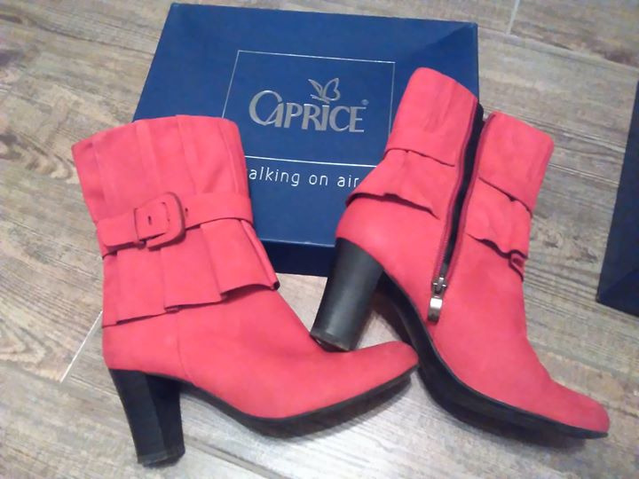 Predám červené lakové kožené kotníky talianskej výroby, len vyskúšané, nevhodný darček, pre mňa malé, veľmi pohodlné a super vyzerajú na nohe, výška kotníkov 33 cm, výška opätku 10 cm, obvod okolo ...