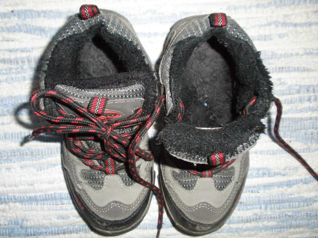 Zimne topánočky na jesen-suchu zimu. Aj ked nie su poškodene ale podarilo sa nam ich okopat tak asi skor na behačky po dvore. Vložka ma cca 19,5cm.