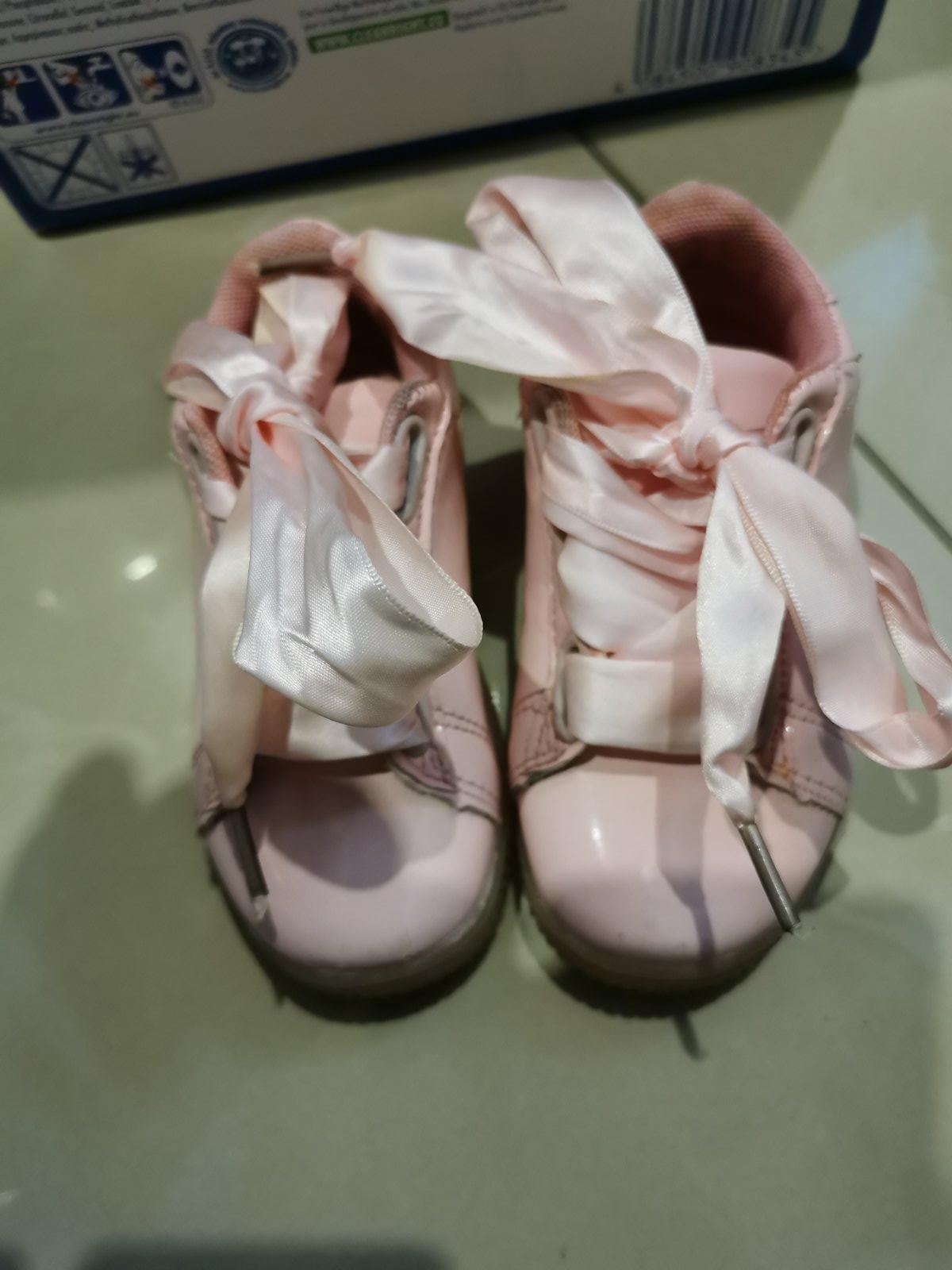 Krásne tenisky s mašličkami na viazanie, dobrý nosený stav, bez poškodenia akurát vpredu trochu šuchnuté, viď foto. Kúpené cez bazár, dcérkou nenosené, veľkosť uvedená 25,ale je to skôr 24/25.