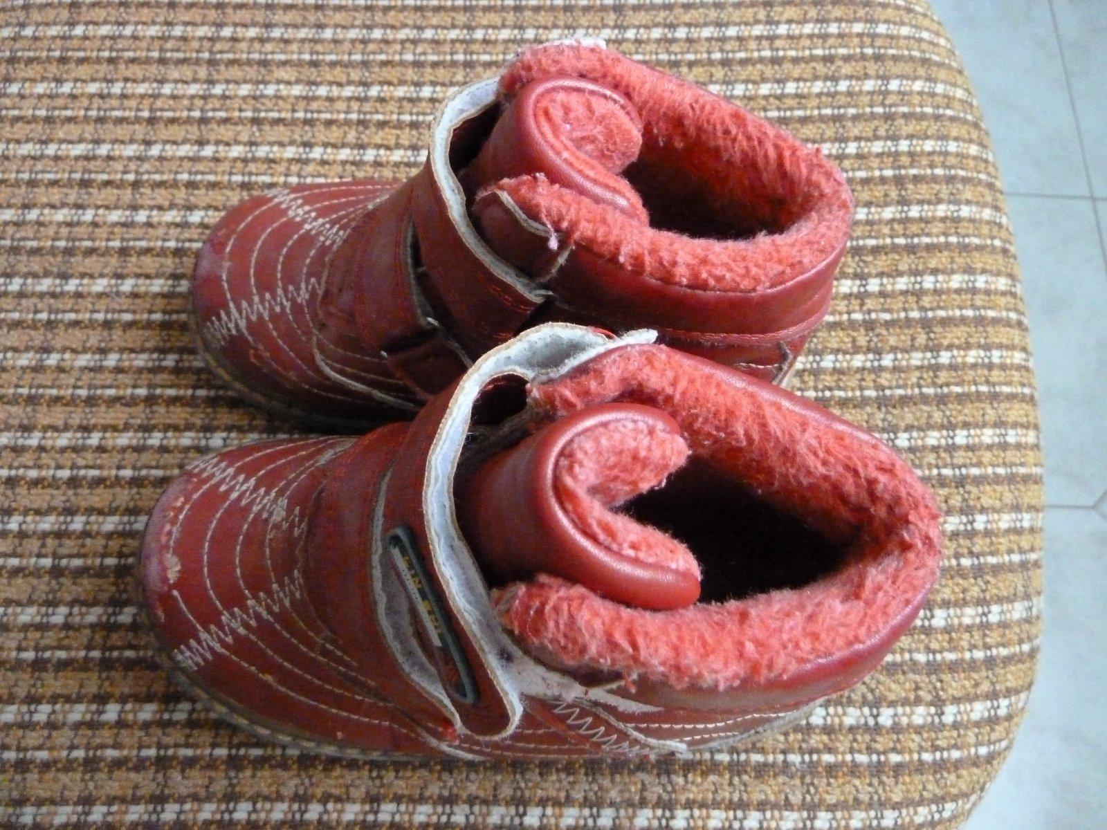 Dievčenské čižmy - topánky na zimu, nosením vpredu okopané, ale mi sme to zatreli červenou fixou, na donosenie, zodpovedá tomu aj cena