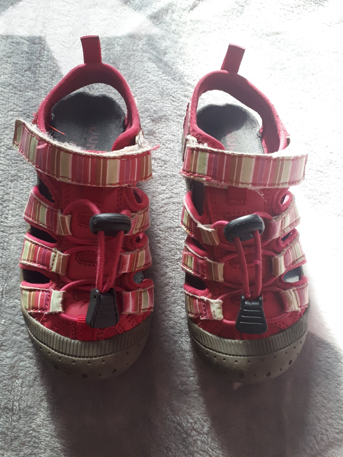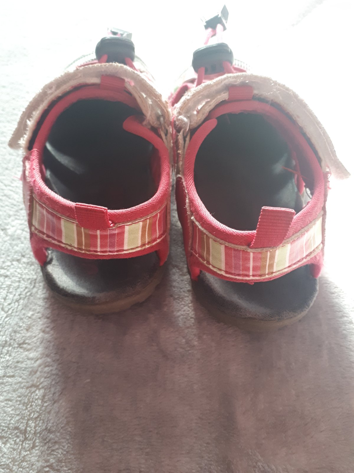 Predam sandalky znacka junior league znamky nosenia vidno na zadnej pate a suche zipsy boli opravovane obuvnikom za nove presite bielou nitkou,ale urcite este posluzia😉cena uz aj s obyc.postou