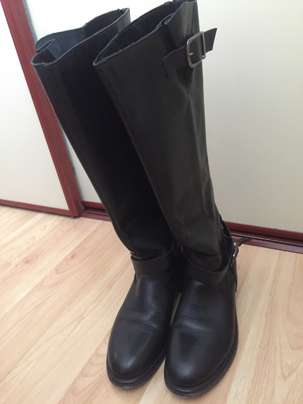 Raz obuté parádne celokožené čižmy na nízkom podpätku. Žiadna umelina. Veľmi sa mi páčili, ale potrebujem väčšie... Kvalitná mäkučká koža, aj zvnútra. Zips vzadu. Pôvodná cena: cca 200 e. Dobré aj pri pevnejších lýtkach - tým, že je tam tá pracka, prispôsobia sa. Priložím darček buď podľa Vášho výberu tu v mojom albume alebo niečo iné...