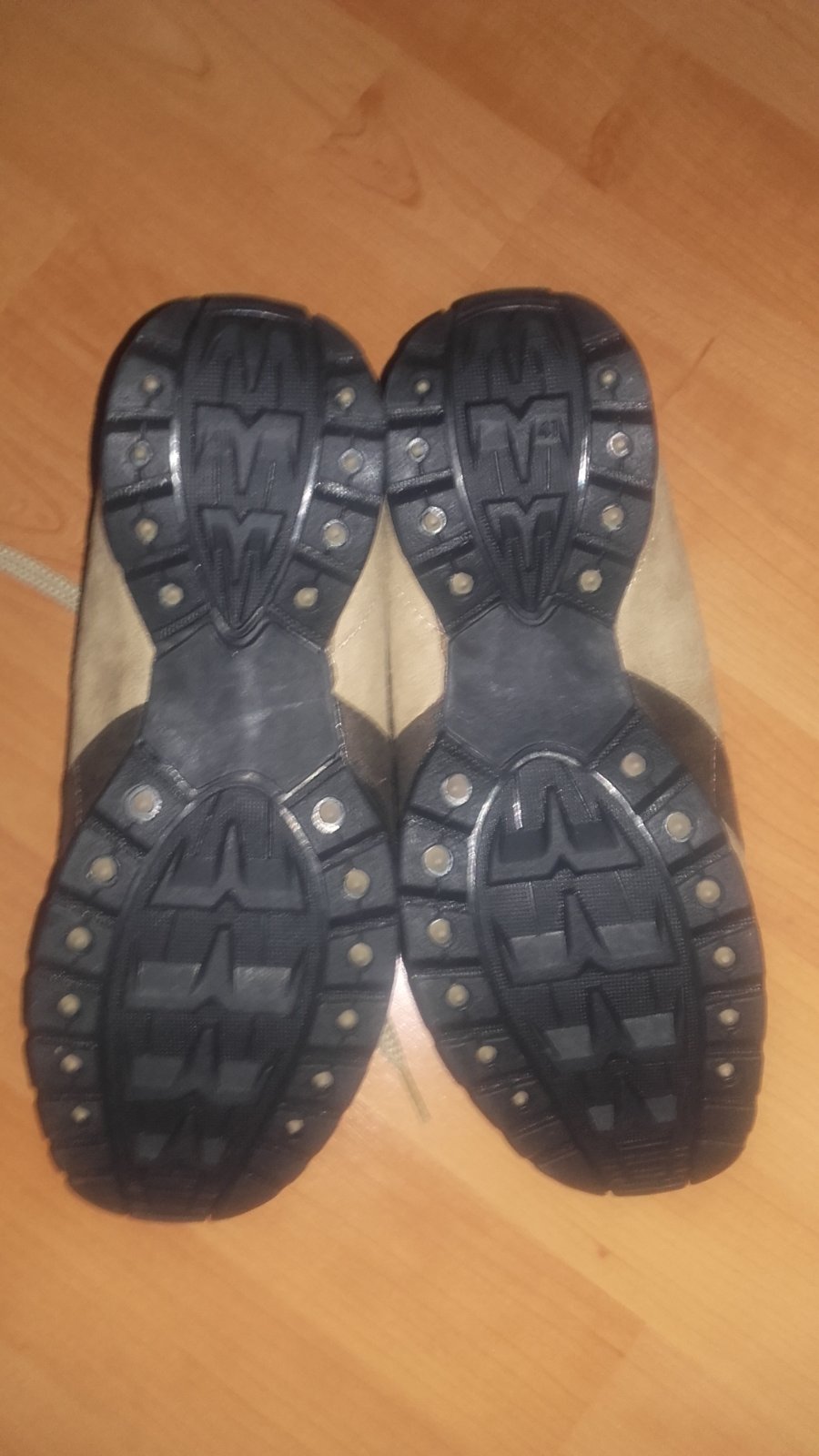 Semišová useň, vnútri polstrované, pevná tvarovaná vibramová podrážka.