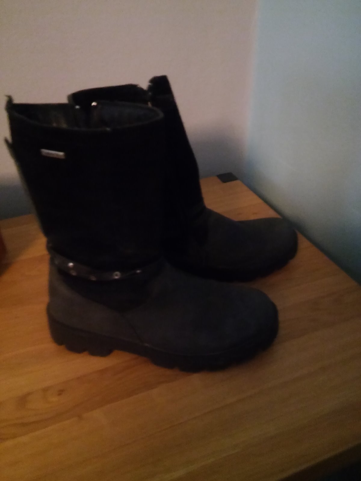Zimne cizmicky v dobrom stave. Neboli vela nosene, ale predok maju malicko osuchany. Su kozene. Povodna cena bola vyse 40Eur. Rozmery: vonkajsia dlzka: 24cm, vnutorna dlzka: 22cm