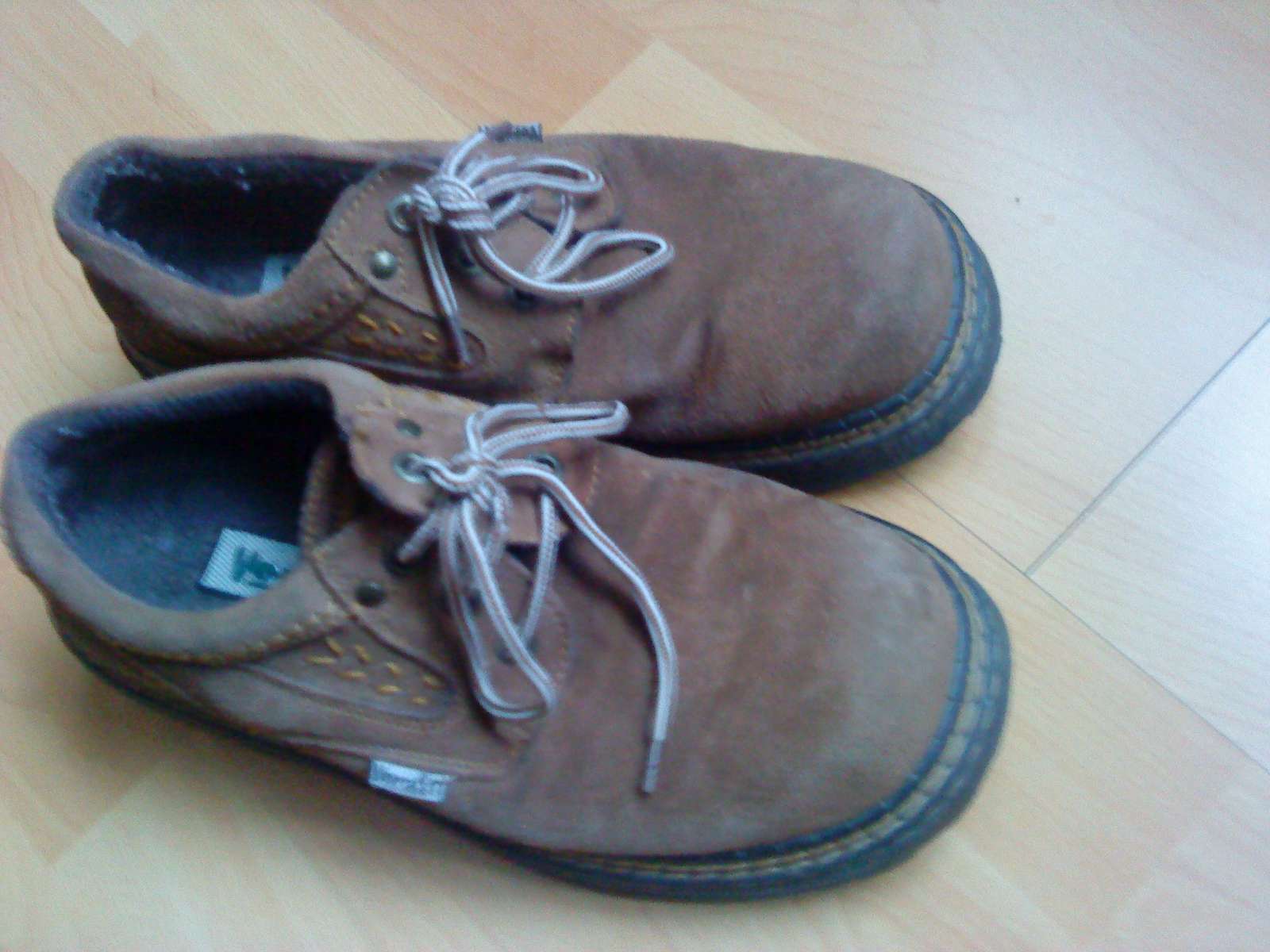 Poltopánky,veľmi pohodlné, brúsená koža, hrubá podrážka, keď nastriekate impregnačným sprejom, môžete použiť aj do vlhkého počasia.Vnútorná dlžka 25,5 cm.Cena 7€.. Poštovné podla poštoveho cenníka a váhy balíčka