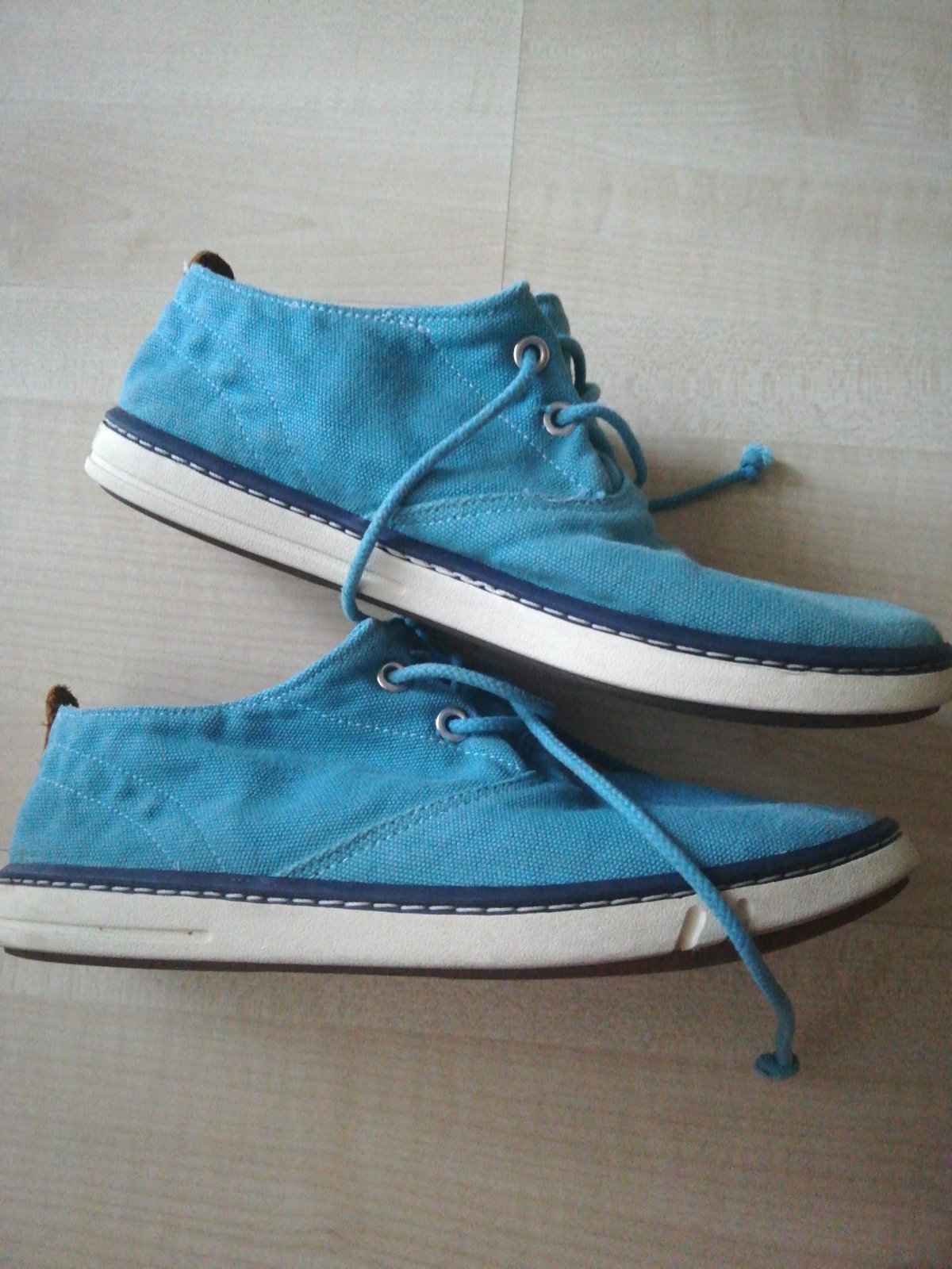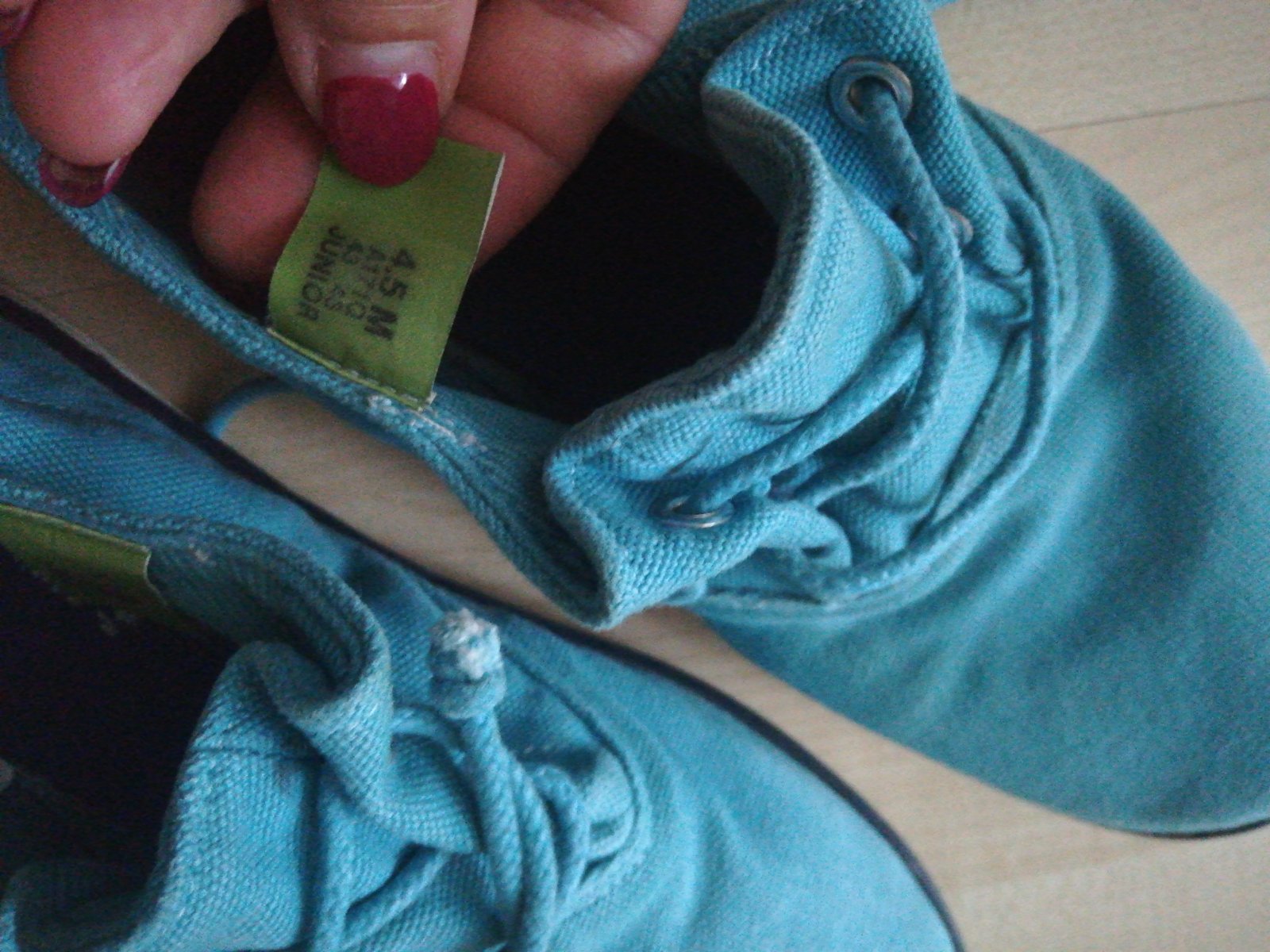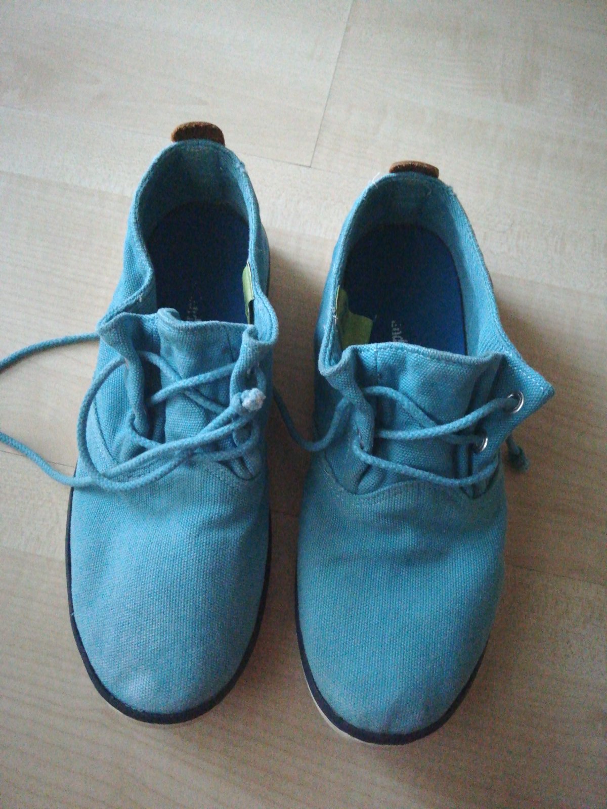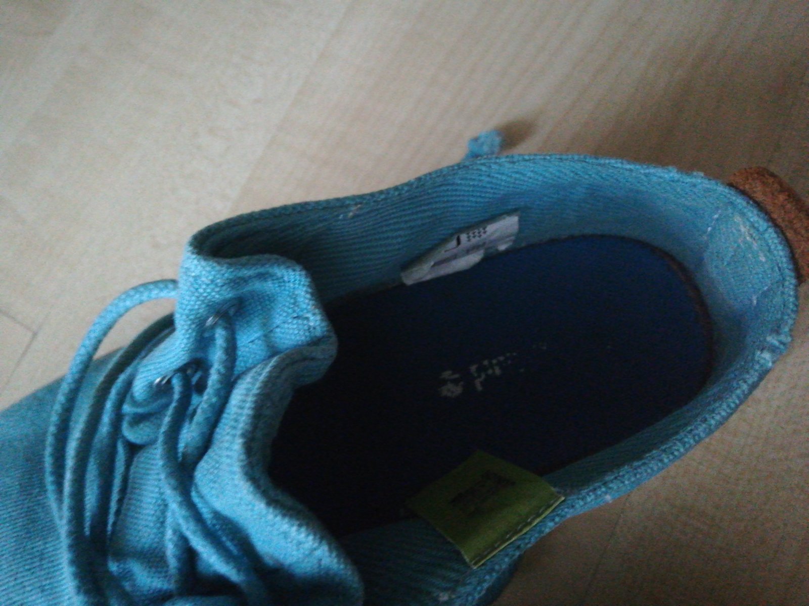 Super plátené Timberland, krasna tyrkysovo-bledomodra farba. Šnurovanie, veľmi pohodlné, ako papučky. Veľkosť Timberland 4,5. Naša 36-36,5-ka. Obute asi 2-3 x. Bez známok nosenia. Rýchlo nám vyhupla noha. Cena 19,90€