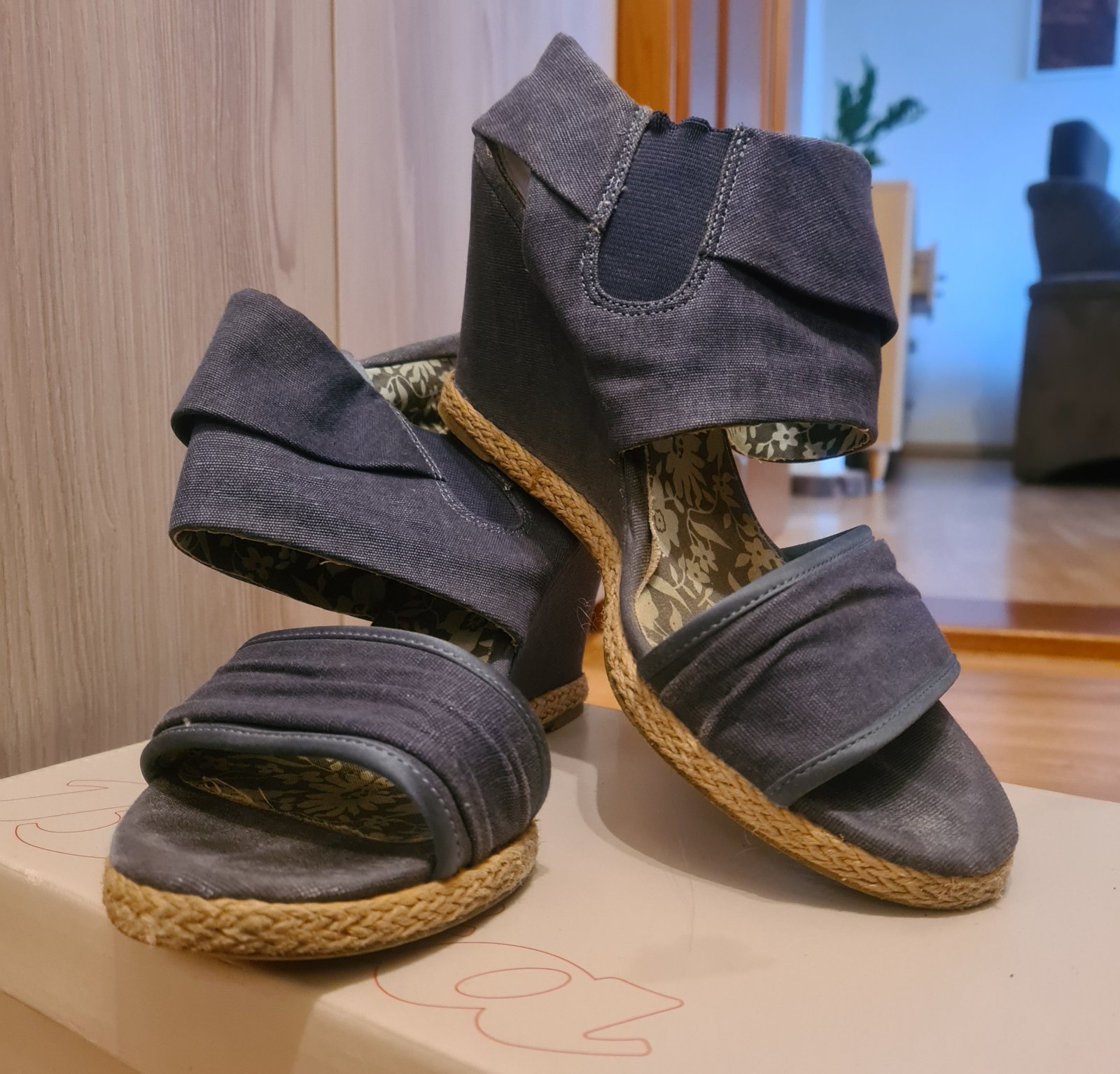 Dámska módna obuv. Materiál textil. Podpätok je plný má výšku 8.5cm. Veľmi pohodlne. Pôvodná cena 39.90