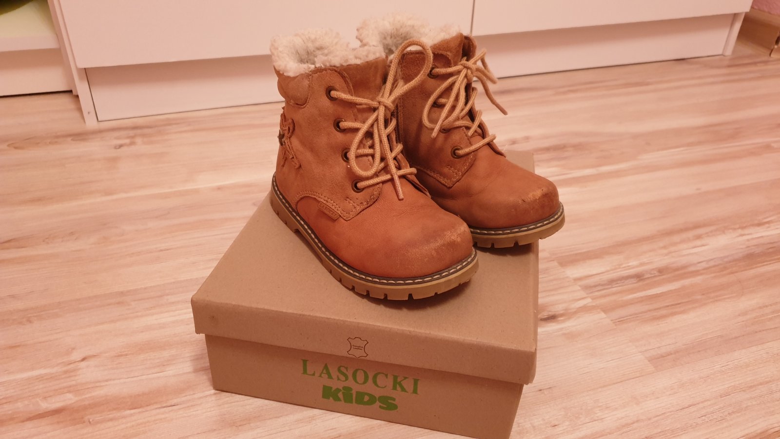 Predam topánky zateplene kožené značky lasocky veľkosť 25 vnutorna dĺžka 15,5cm, nosene na striedačku s inými zachovale, povodna cena 24,95€ nosene minulú sezónu cena teraz 8,50 eur, z vnútornej č...