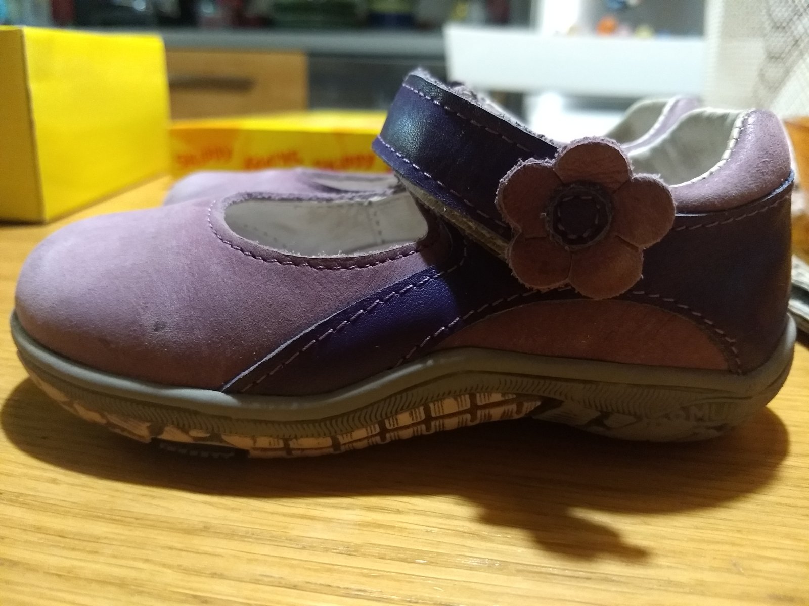 Pár krát obuté, no nosenie vidno hlavne na podrážke a okolo... trošku zožltnutý materiál viď fotky..odporúčam pre širšiu nožičku, vnútorná dĺžka 14,5 cm.