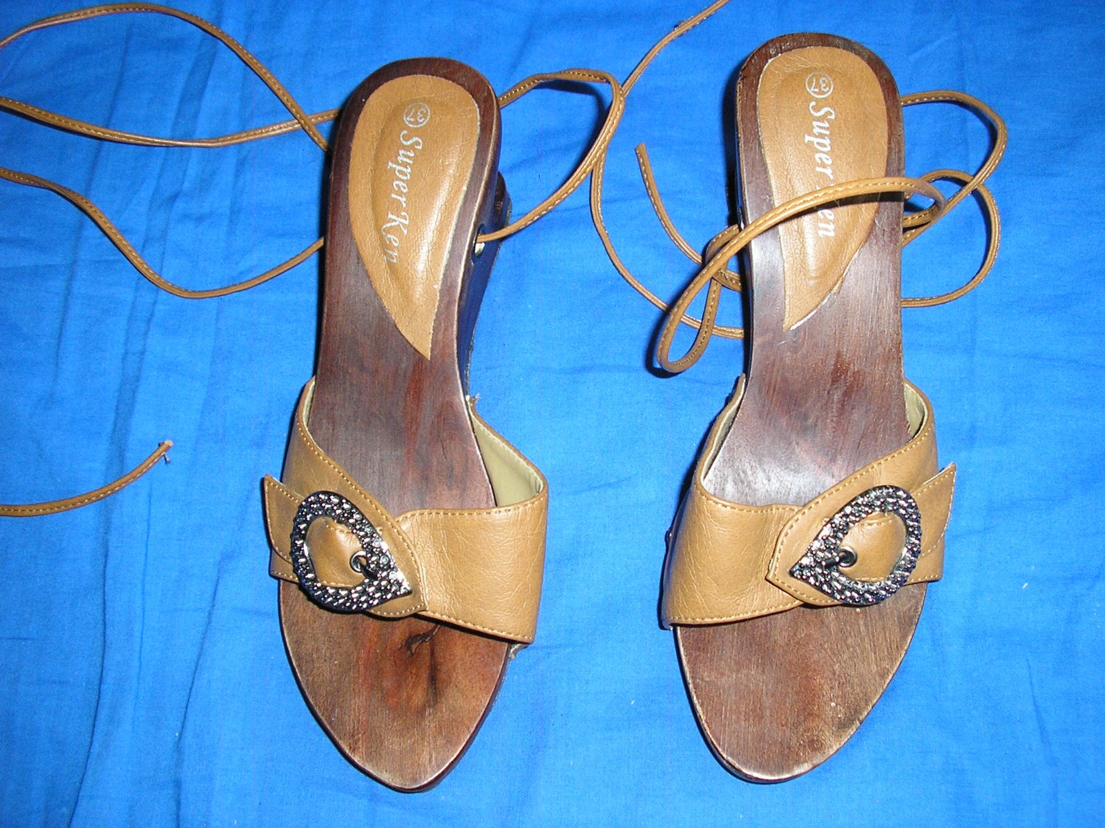 Super ken sandálky – dreváčiky sú hnedej farby, viazanie so šnúrkami, kombinované s kožou. Málo nosené, zachovalé. Pohodlne sedia na nohe. Dobre sa v nich chodí.