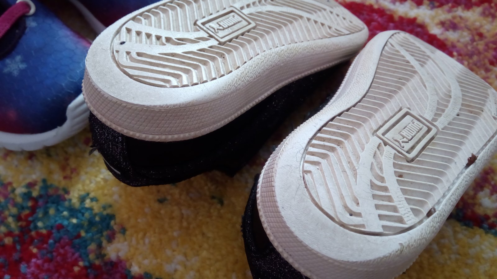 Tenisky puma v dobrom nosenom stave. Jedine z vrchu po olemovaní je látka vyblednutá do takého hnedého odtieňa. Viď foto. Inak bez poškodenia. VD 14,5cm.