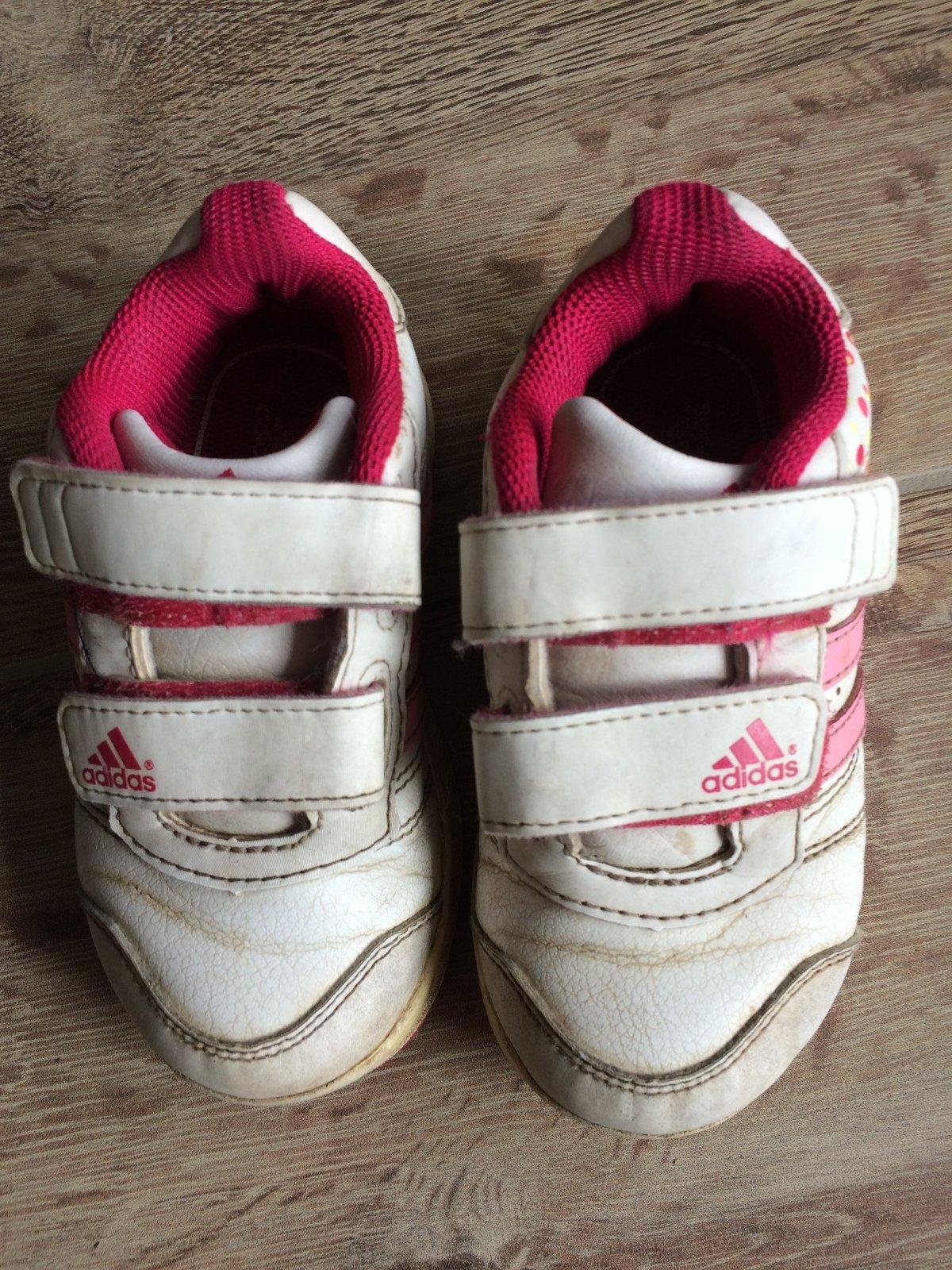 Posúvam ďalej nosené Adidas tenisky 23 po 1 dieťati kupované nové. Dobrý, nosený stav.ľahko sa obúvajú, VD 14cm, suma symbolická