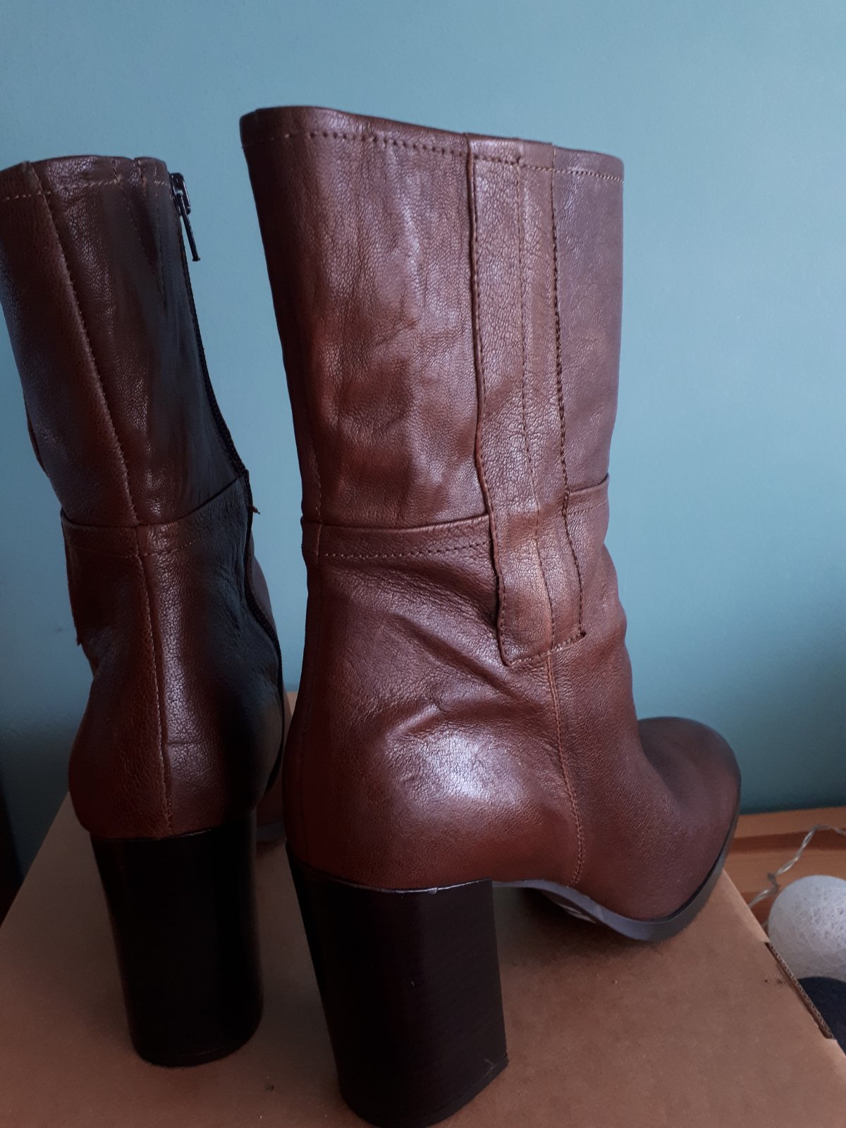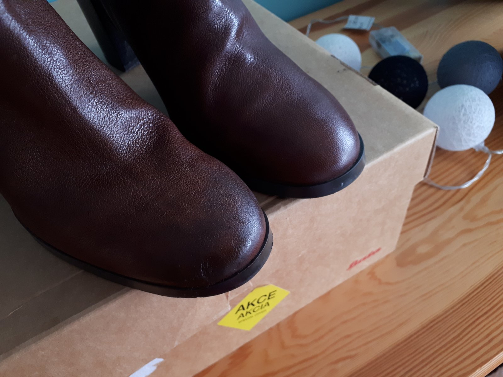 Kvalitne, makka koza, z drahsej kolekcie, pc 105€, kupene v zlave, napredu je male poskodenie, pri noseni nevidno...detail foto...2-3 obute