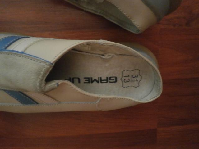Párkrát obuté, farba jemne vyblednutá po praní. Kupované ako cvičky na telesnú. Vhodné aj na úzku nôžku. Veľkosť udávaná výrobcom č. 30. Dĺžka zvnútra aj zvonka max. 18 cm.