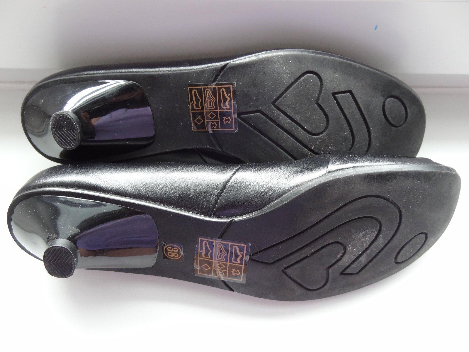 Krásne kvalitné kožené lodičky. Kupované v Poľsku, obuté asi tak raz (nezvládam opätky) :-) Mäkké, majú remienok čím predchádzajú vypadávaniu nohy. Kupované v Poľsku, pôvodná cena okolo 40 Eur. Výš...