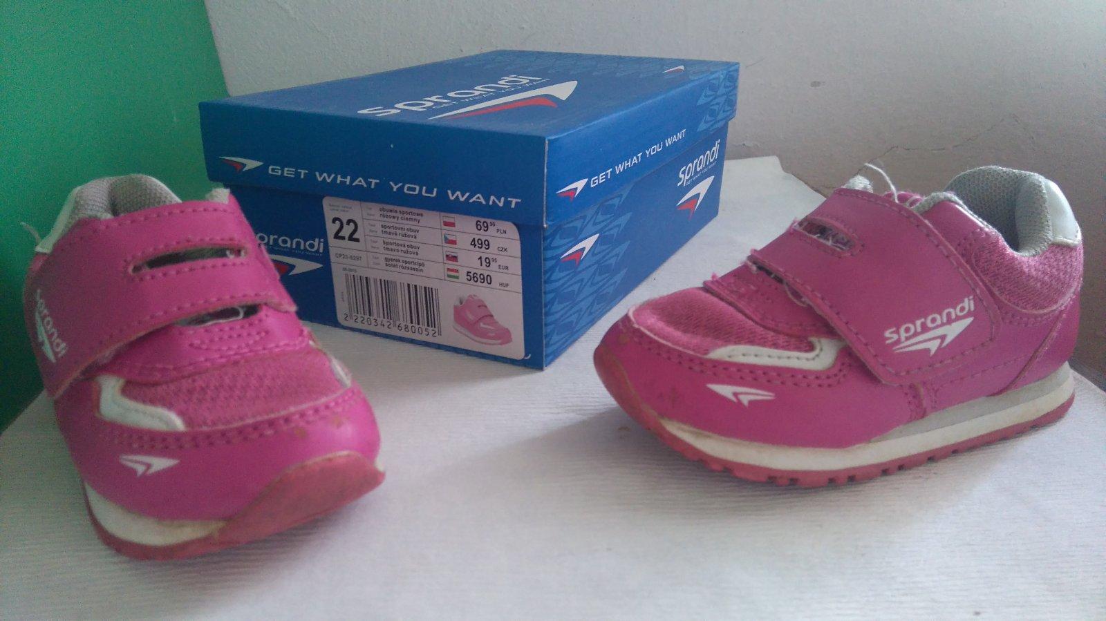 predám dievčenské tenisky, nosené iba mojou dcérou, veľ. 22, vnútorná dĺžka 14cm, majú fliačiky vpredu na ružovej časti pri nosení nie je vidieť, a pravá topánočka ma zošuchané (0,5cm) miesto vpre...