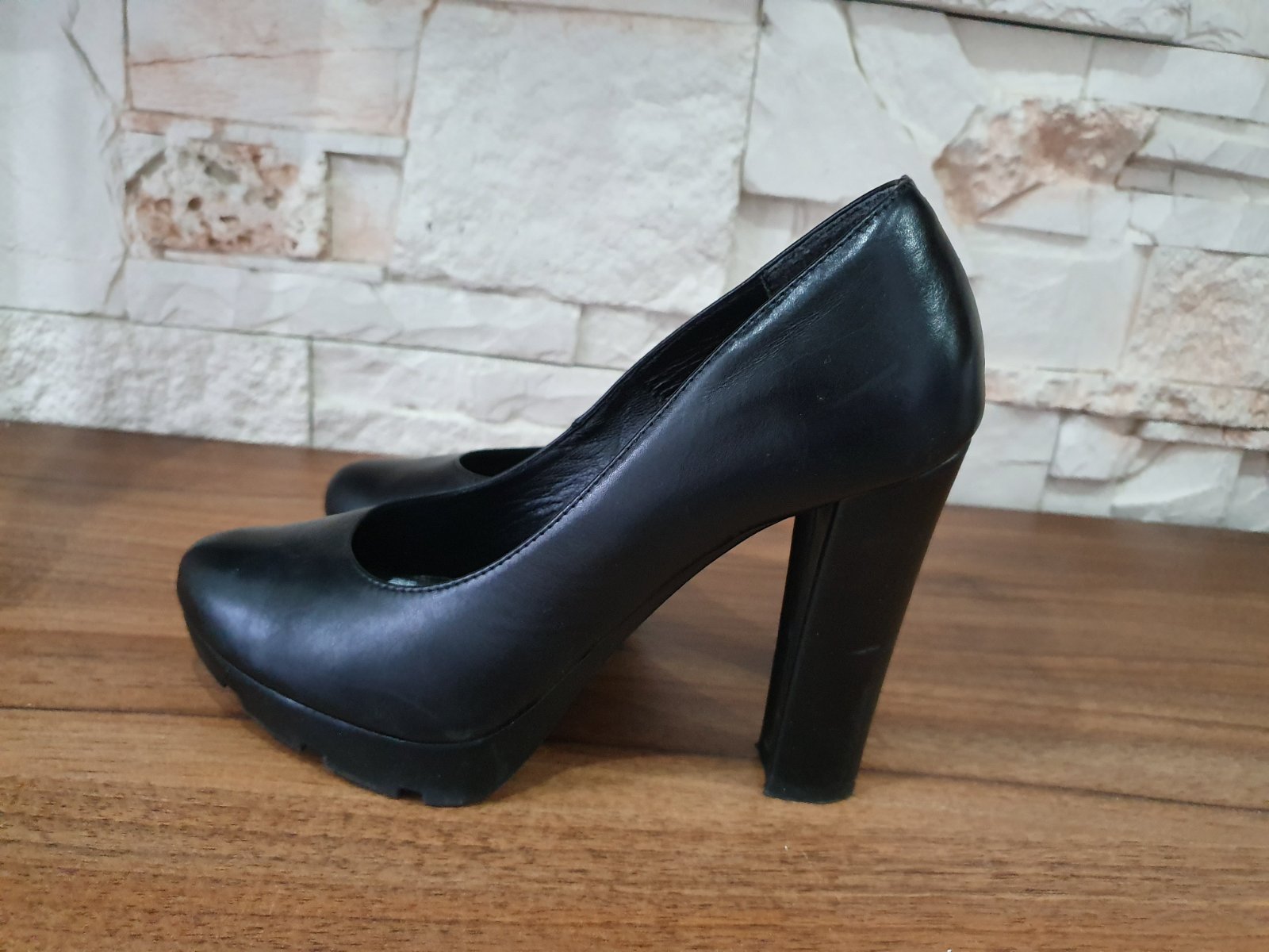 Čierne kožené lodičky Wojas, nosené, majú vpredu trosku šuchnuté aj na opatkoch, je to nafotené, ale pekne sa to zatrie s čiernou..inak veľmi pohodlný kúsok.