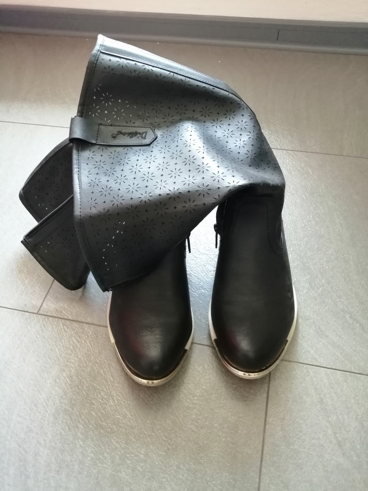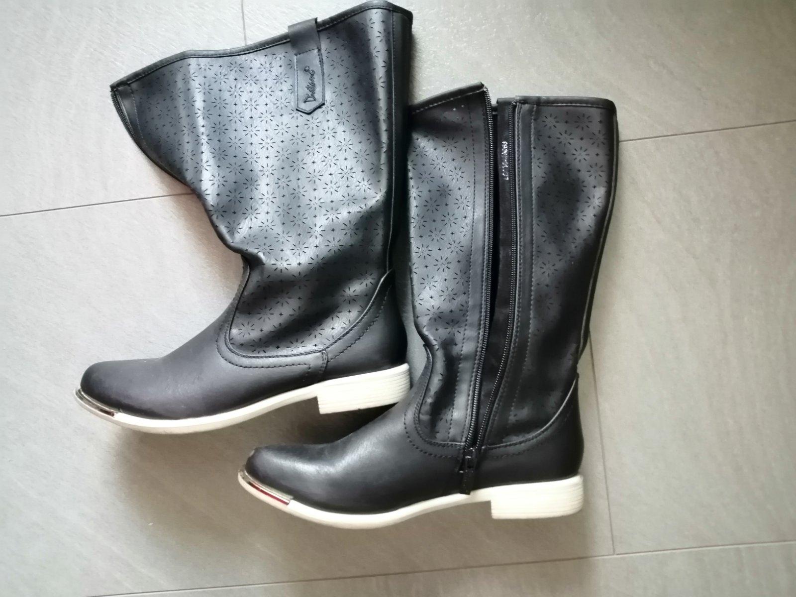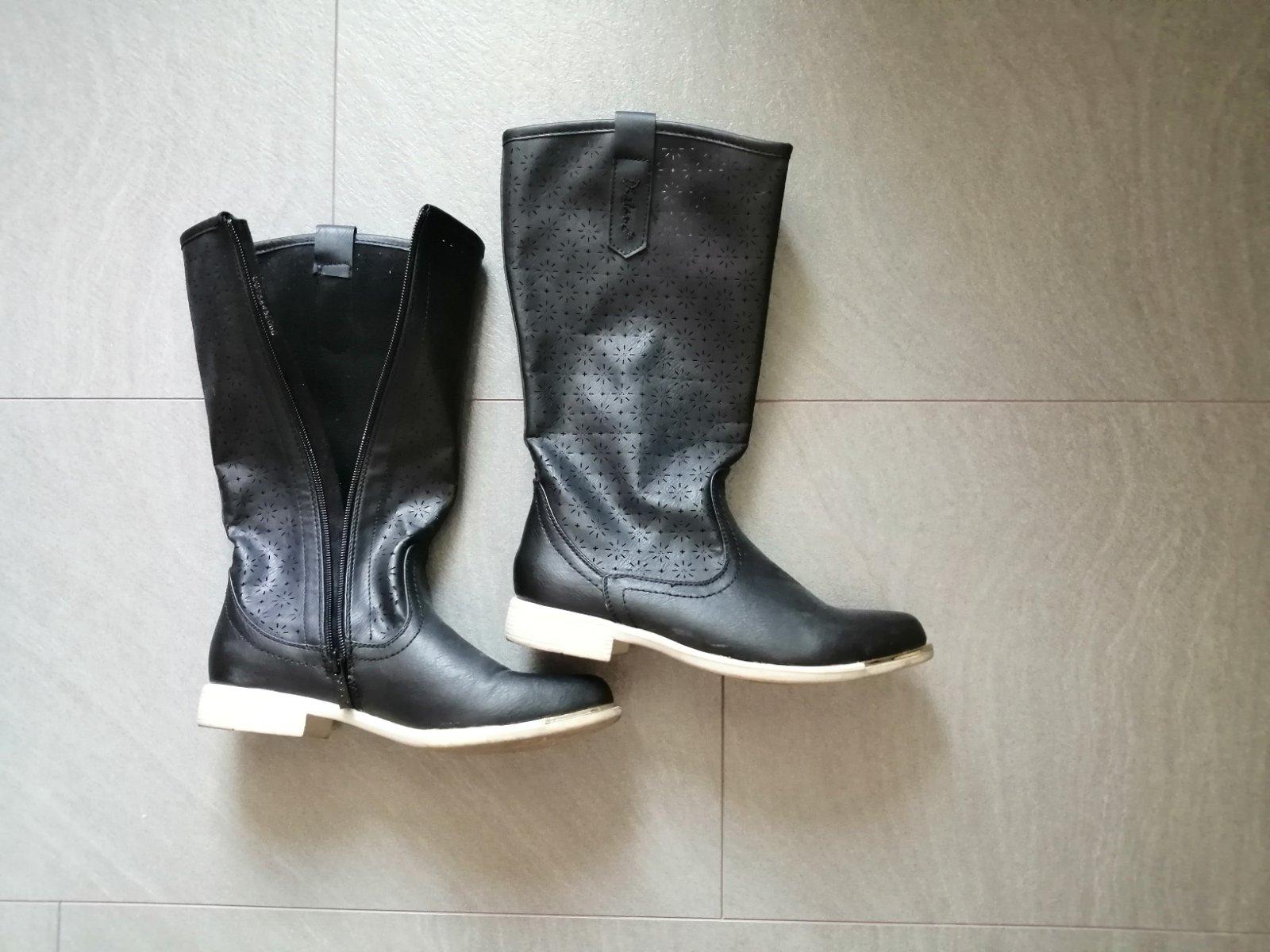 Nezateplené čižmičky, na sárach je ornament. Kúpené asi v Deichmann, obuté mnou 2x. Pôvodne cena 20 eur. Sára je vhodná aj na trošku širšie lýtko. Veľkosť uvedená 37, ja mám 38-39 a sú mi dobré.