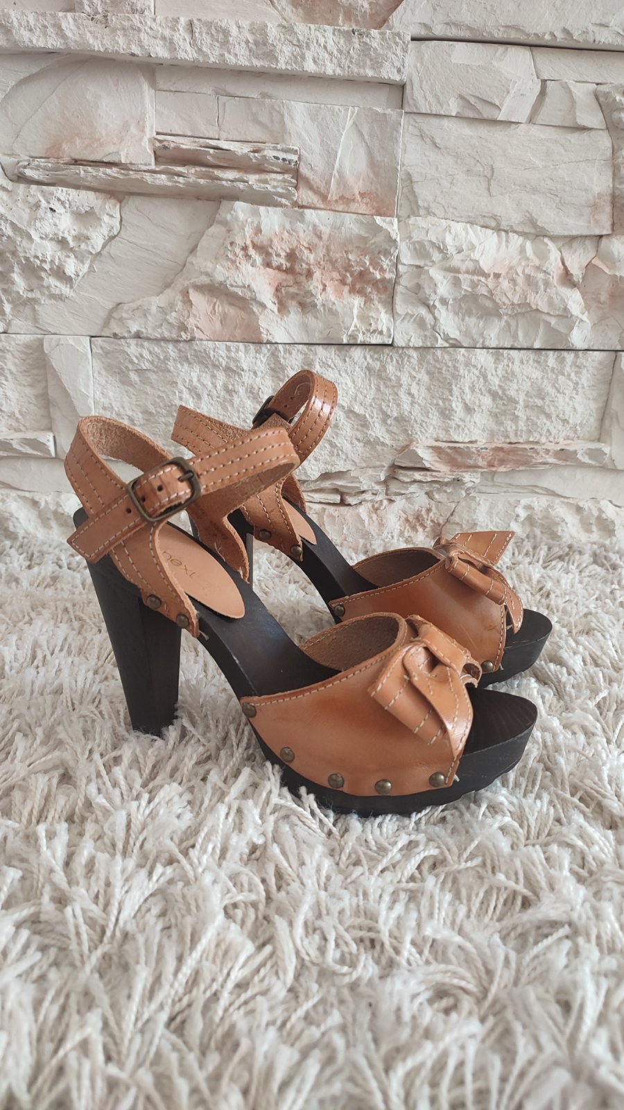 Krasne sandale zn. NEXT, v konakovej farbe. Material prava koza, naspodku je tvrdsia guma.