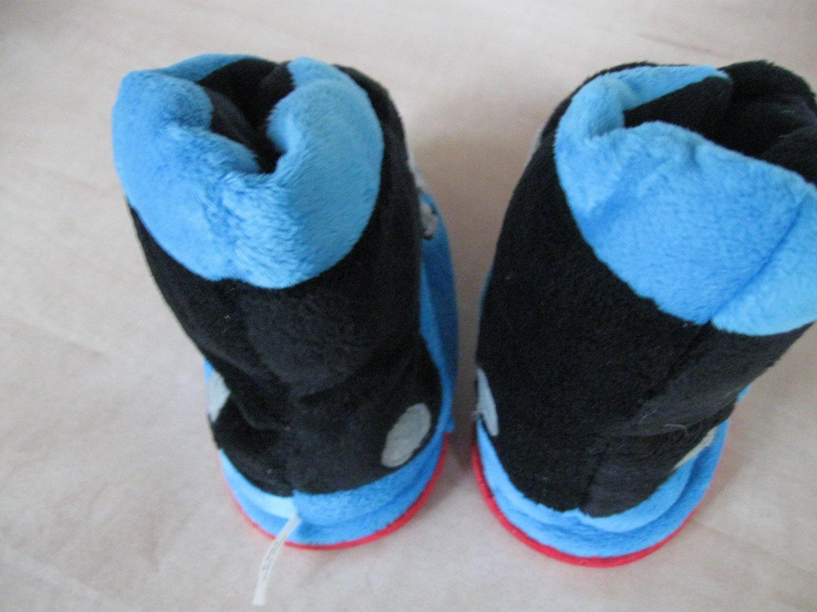 Predám nápadité papuče nasúvačky - sú vyrobené ako lyžiarky, naťahujú sa, dá sa odlepiť na suchý zips iba vrchná "klipsňa", tie 2 sú prišité. Vonkajšia dĺžka je 16cm, je to veľkosť 22-24. Sú vo veľmi zachovalom stave, skoro ako nové.