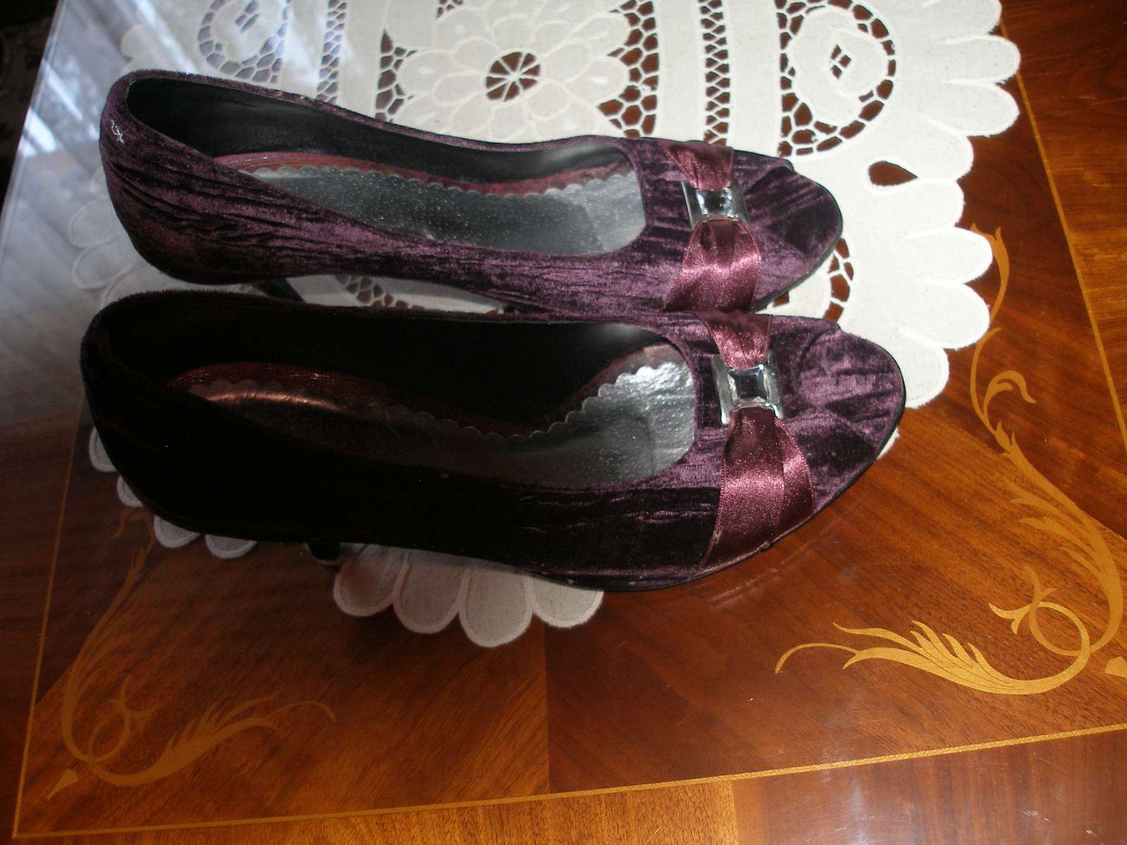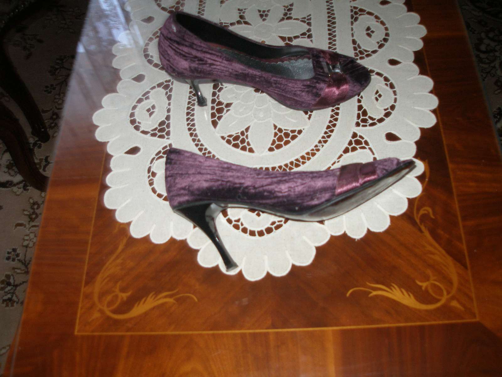 Dámske lodičky s otvorenou špičkou,vpredu zdobené ozdobnou retiazkou, pôsobia ze su čierne, no su take tmavofialove, velmi pohodlné.