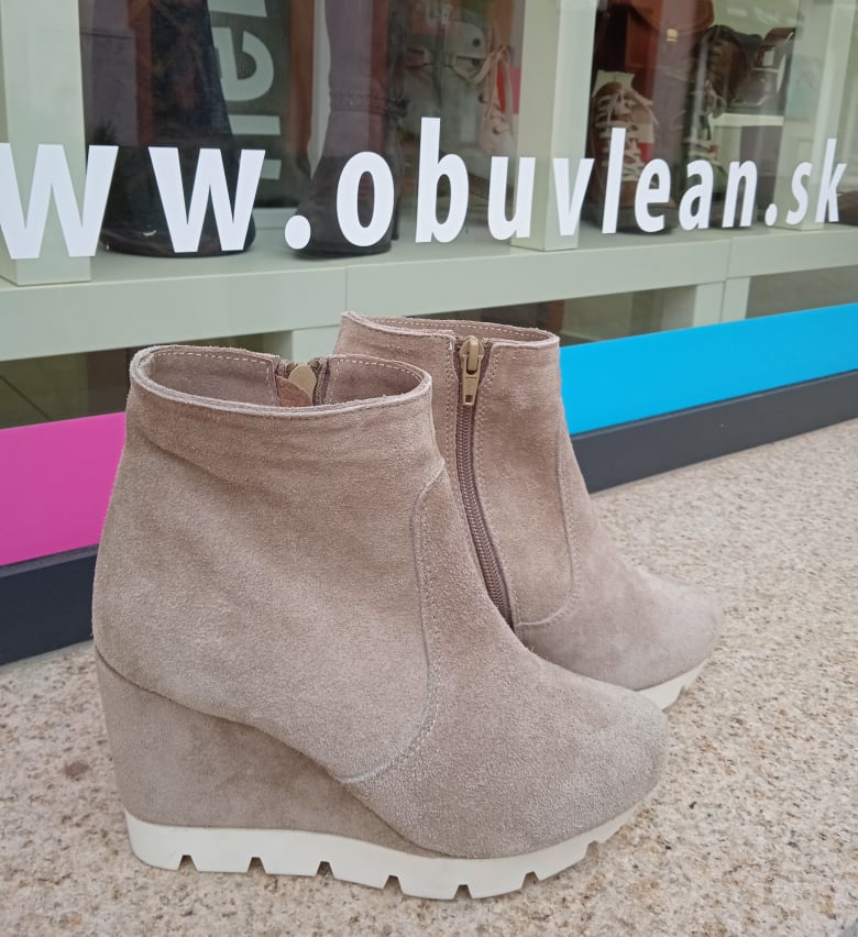 Zateplené čižmičky na platforme z brúsenej kože so zapínaním na zips.