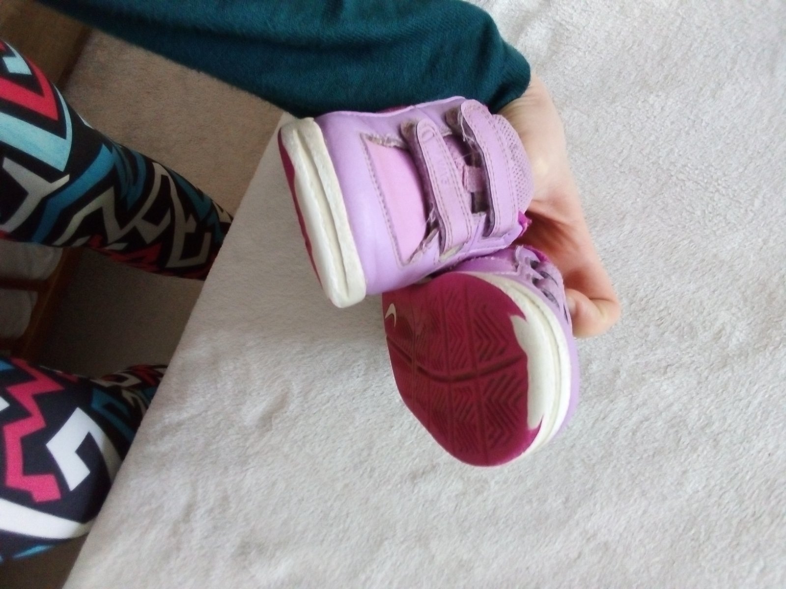 Bledofialove hrubsie tenisky. V peknom stave. Osuchane ppdrazky zo spodu z odrazadla. No na pohlad na nohe nevidiet. Velkost 23,5