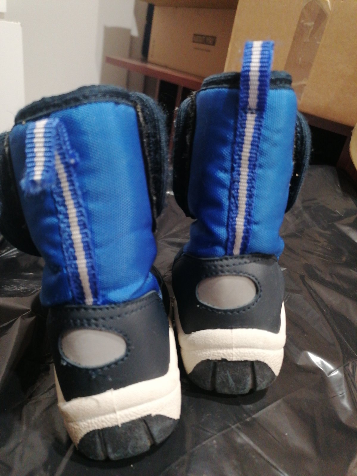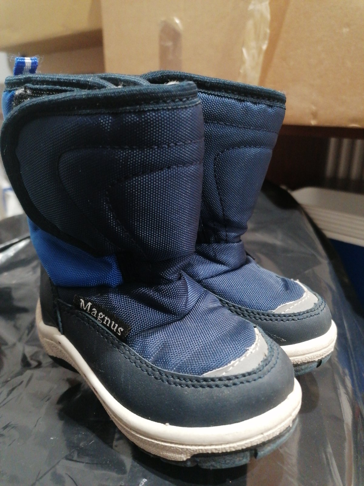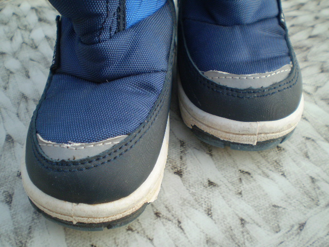 Pekné topánky na zimu zn. MAGNUS veľ. 22. Praktické zapínanie na suchý zips po oboch stranách topánky (viď foto). Vnútorná dĺžka 14cm. Malinké páranie látky pri leme, fotka v detaile, zohľadnené v cene.