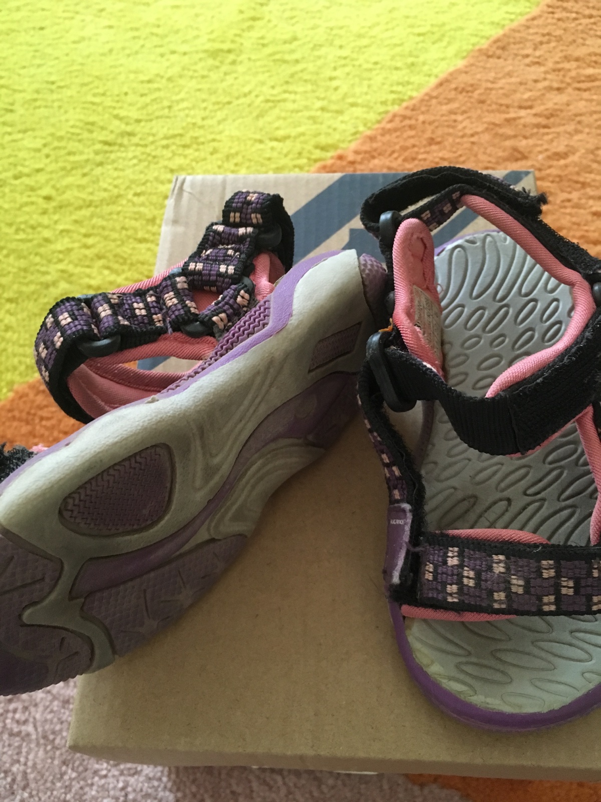 nepoškodené kvalitné sandále, zapínanie regulovateľný suchy zip, vn. dl. 14cm,