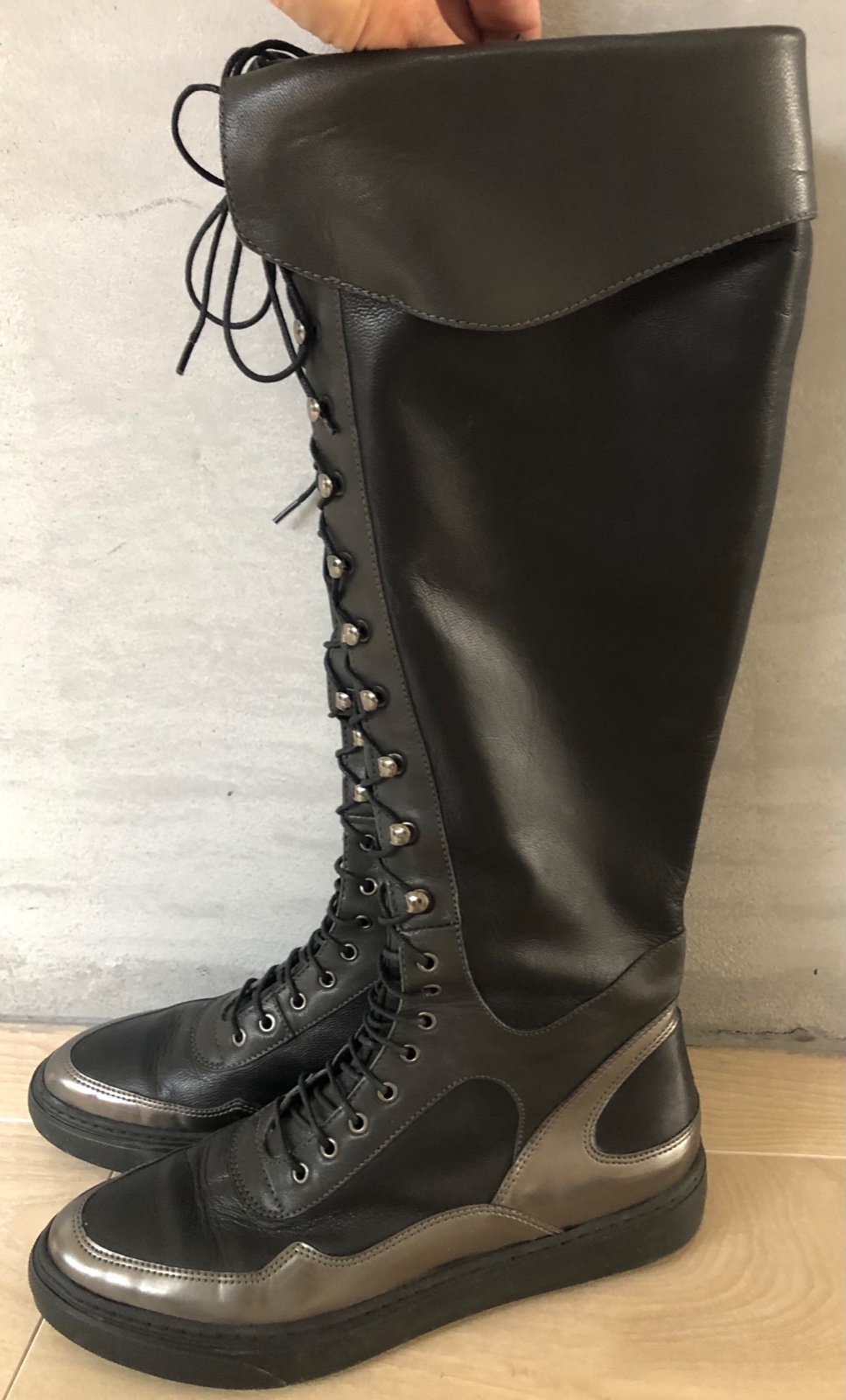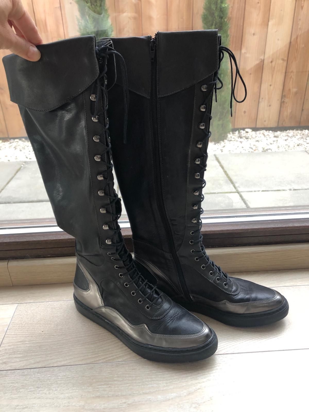 Zaujimave šnurovacue čižmy, na boku na zips po celej dlzke, kupovane v IT, vnutri nie su zateplene, vhodne na prechodne obdobie, velkostne sedia na 37, pohodlna podrazka. Nosene, najlepsie vid fotky, ale su stale pekne aj pekne sedia☺️