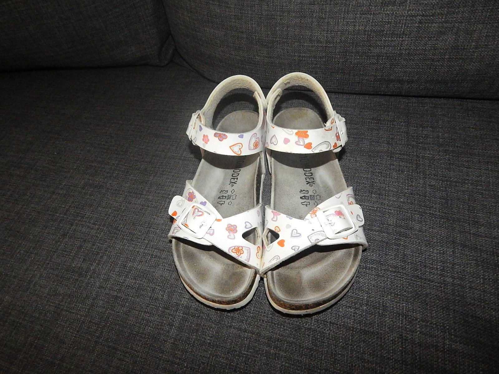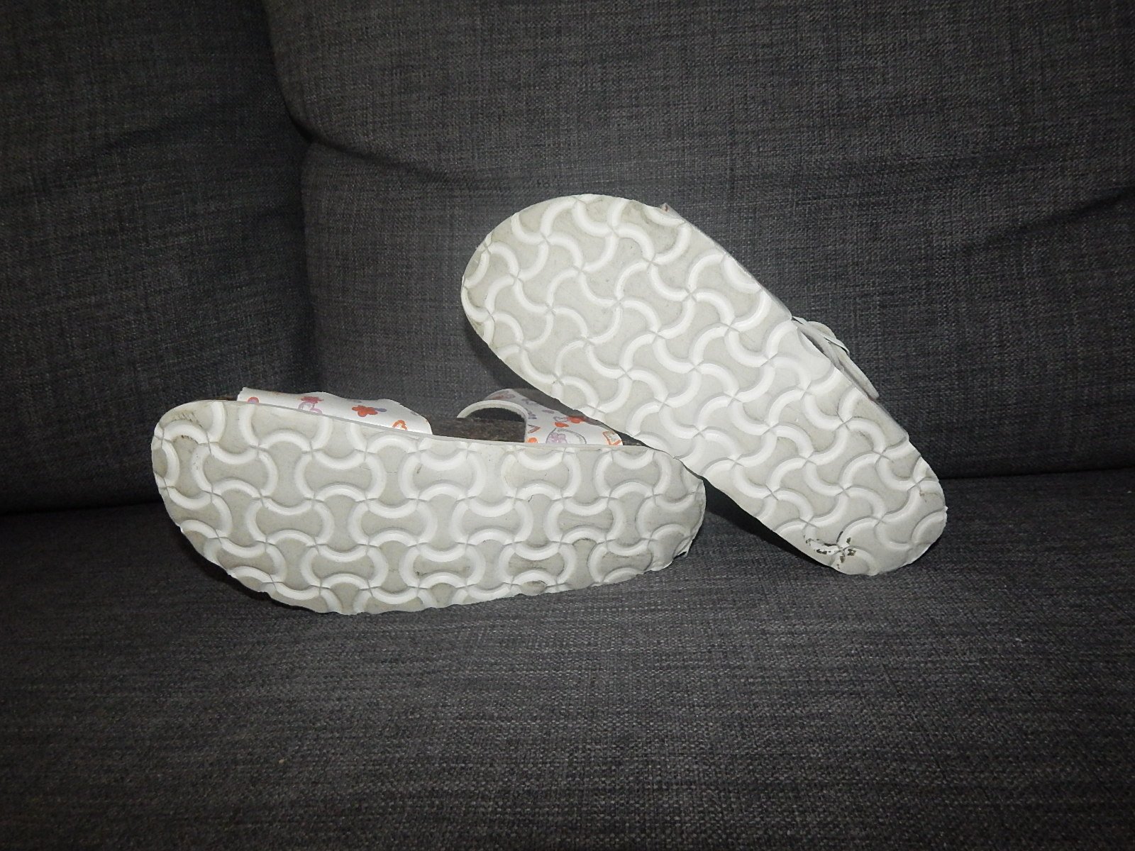 Predám biele sandálky s tvarovanou koženou stielkou kupované v lekárni, značka Biomodex písaná veľkosť 34, ale sedia na nôžku 33. Vnútorná dĺžka 21,3 cm. od okraja po okraj je 22 cm. Výborný nosený stav.