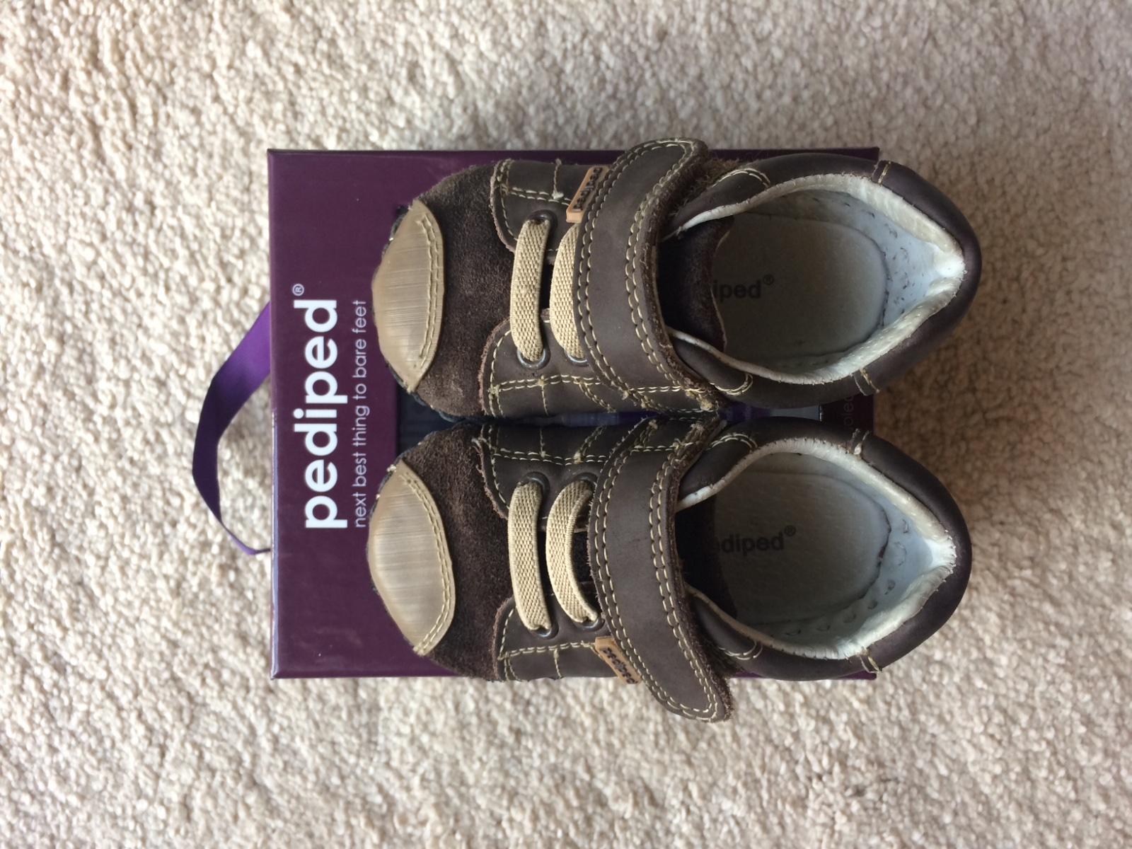 Predám používané chlapčenské barefoot kožené topánky značky pediped originals (vhodne pre prvé kroky) vo veľmi dobrom stave, bez akéhokoľvek poškodenia. Velkost 20. Vnútorná dĺžka 11,5 cm pre vekovú kategóriu 12-18 mesiacov. Cena 25 €. Povodne 41,50 €.