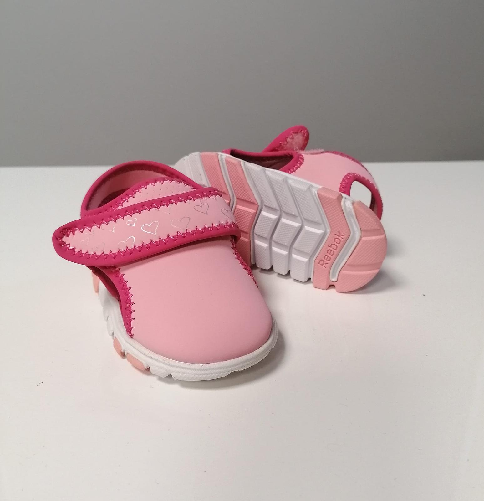 Reebok detská obuv, tvar zvršku vyvinutý špeciálne s ohľadom na anatómiu chodidla. Majú mäkkú tkaninu a zapínanie na suchý zips, ktoré zaisťujú dokonalé uchytenie. Bočné otvory zabránia prehriatiu nožičky. Ľahká a ohybná podrážka.