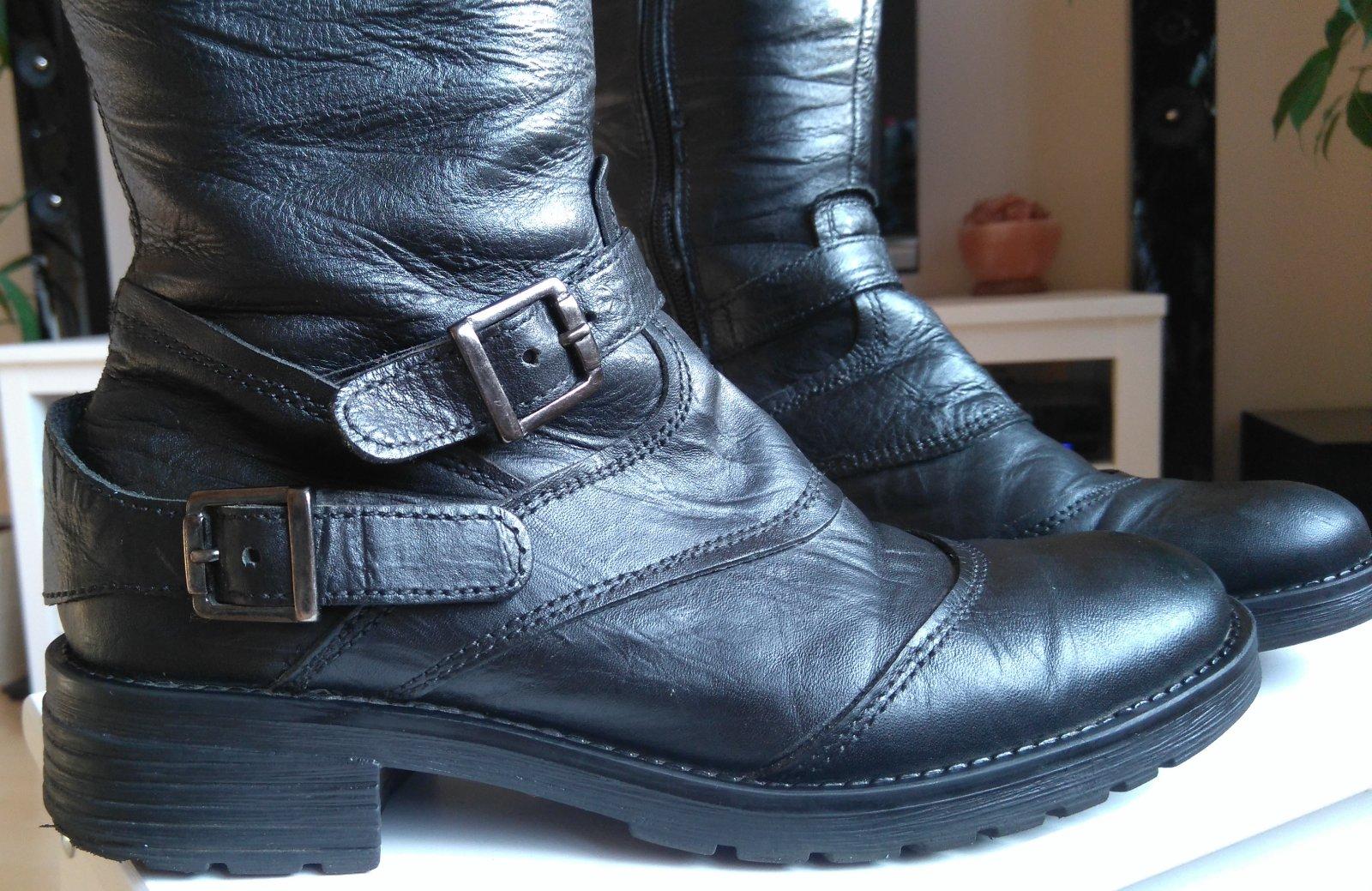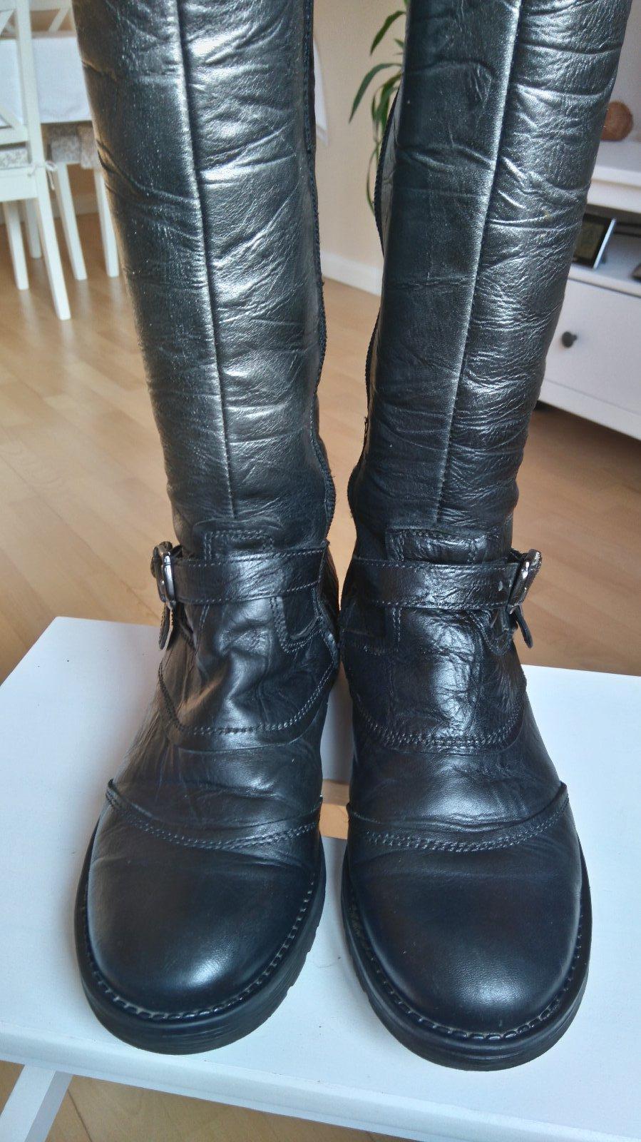 Predám celokožené, málo nosené čižmy v. 37. Na čižmách nie sú žiadne škriabance, opätky su zodrané minimálne, viď foto.