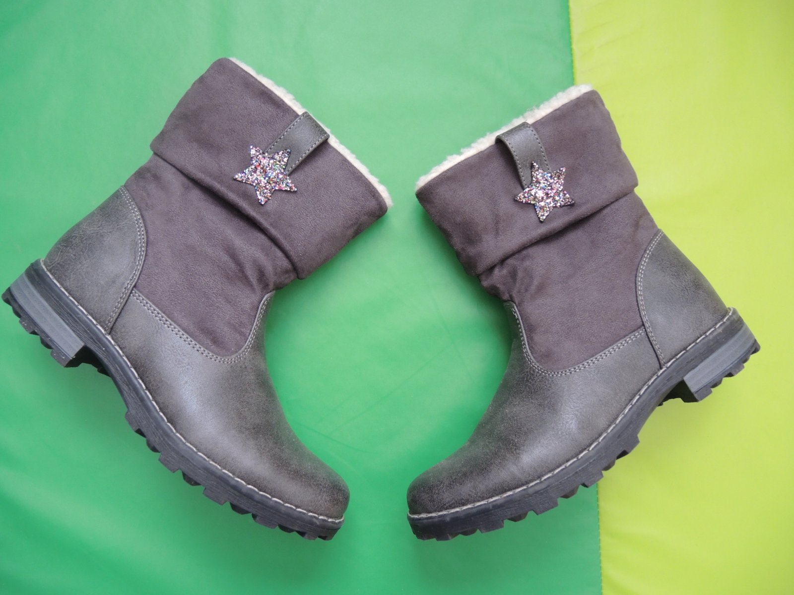 Predám prekrásne čierne trblietavé čižmičky kupované v Deichmanne. VD 20,5 cm. Výška 17 cm - merané aj s opätkom ... Mali sme ich iba 1x odskúšané v predajni. Najskôr sa dcérke páčili a potom si to rozmyslela. Že sa jej nepáčia. Ale sú úžasné, teplučké, do polky sú celé trblietavé. Na foto to tak dobre nevidno, ale krásne sa trblietajú. Zapínajú sa z boku na zips. Krásne, mám k nim aj originál krabicu. ... Predávam aj podobné tmavošedé s trblietajúcimi sa hviezdičkami Cupcake v tej istej veľkosti s rovnakými rozmermi. Viď posledné a predposledné foto. Cena je uvedená za 1 ks.